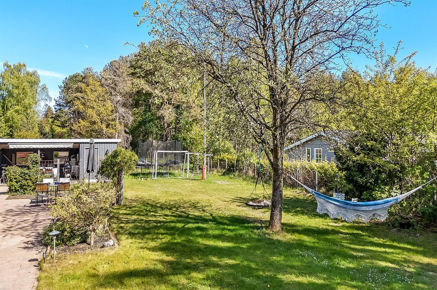 Ferieboligen er beliggende på en 1200 m² stor naturgrund. Der er 6000 m til havet. Der er en sø i en afstand af 2500 m. Nærmeste forretning er beliggende i en afstand af 2500 m. Der er en golfbane i en afstand af 10000 m. Til ferieboligen hører åbent terrasseareal. Desuden er der overdækket terrasse. Gynge. Trampolin. Fodboldmål. Bålsted. Grill til rådighed. Parkering ved ferieboligen.