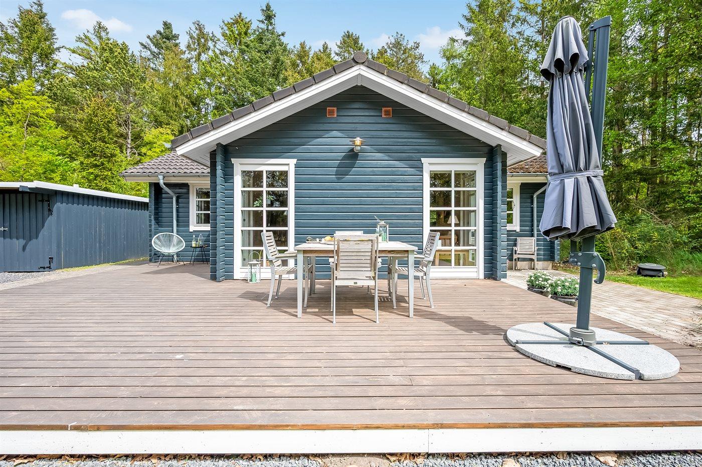 Hyggeligt sommerhus i Fuglslev med spa, brændeovn og stor naturgrund, tæt på Ebeltoft og Djurslands kyst.