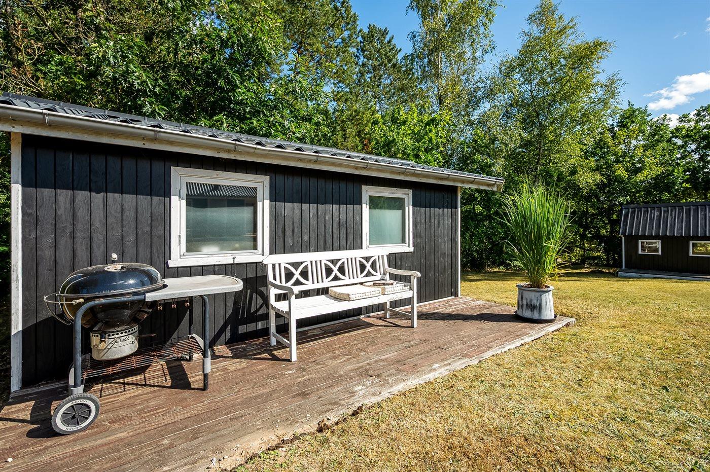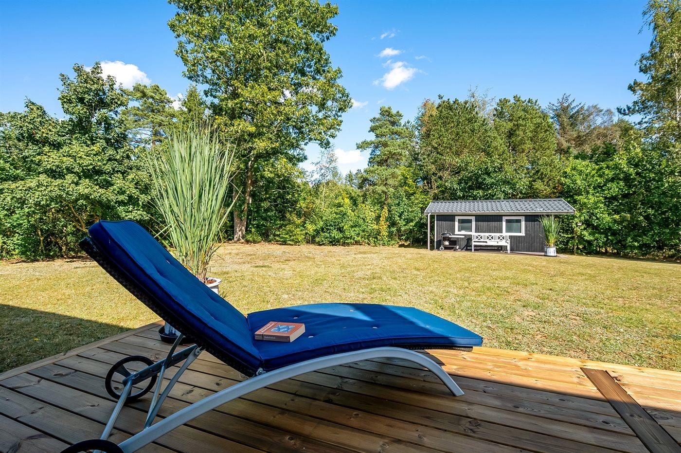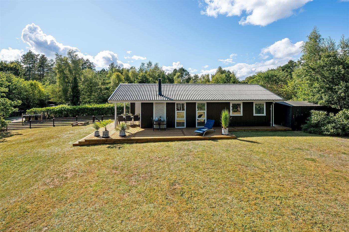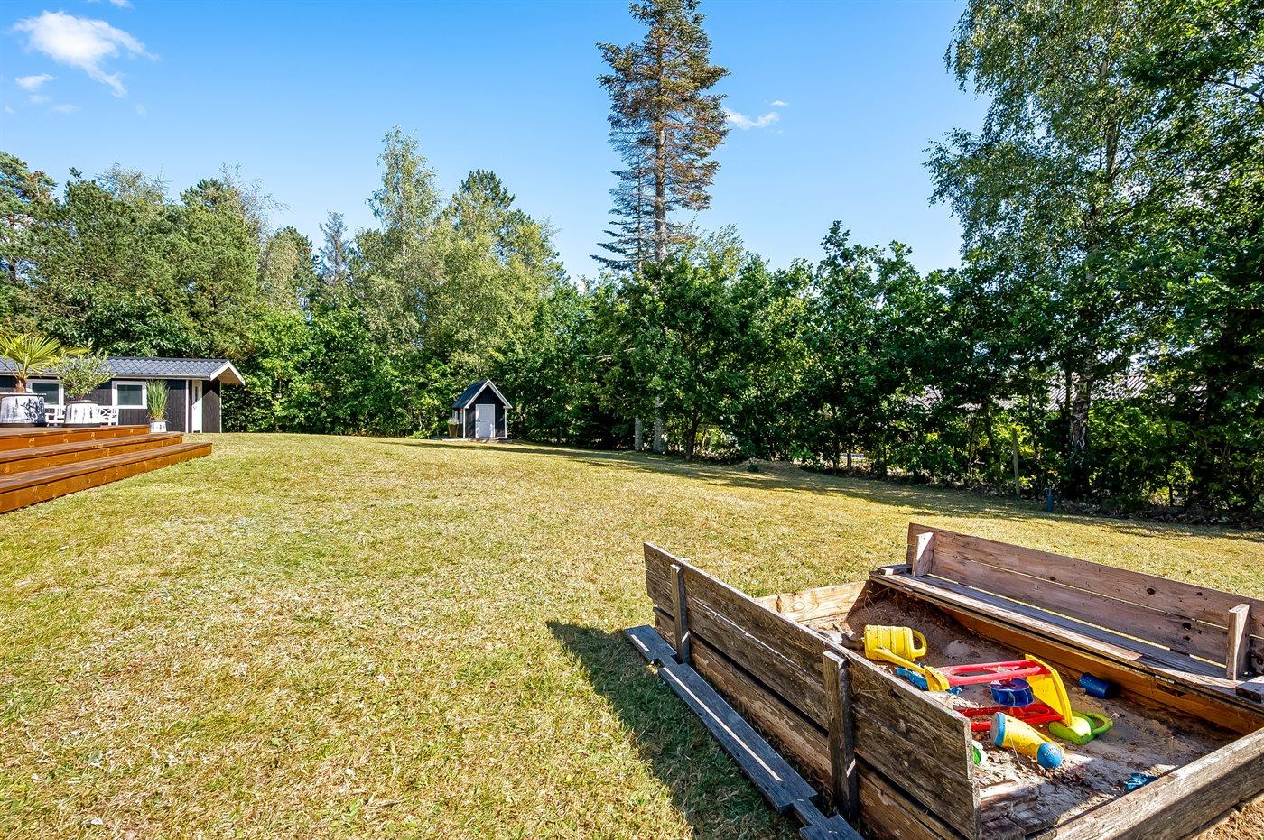 Ferieboligen er beliggende på en 1208 m² stor naturgrund. Grunden er indhegnet. Der er 7000 m til havet. Nærmeste forretning er beliggende i en afstand af 3000 m. Til ferieboligen hører åbent terrasseareal. Desuden er der overdækket terrasse. Sandkasse. Legehus. Grill til rådighed. Parkering ved ferieboligen.