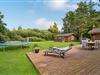 Udenfor er der en stor grund med masser af plads til at lege, en sandkasse og trampolin til børnene samt et hyggeligt shelter, hvor I kan overnatte hvis I selv medbringer soveposer og liggeunderlag. Slap af i komfortable liggestole på den store overdækkede terrasse og se frem til hyggelige grillmiddage. I kan også glæde jer til at nyde det varme vand i det brændefyrede vildmarksbad, hvor I kan slappe af og hygge jer efter en aktiv dag.