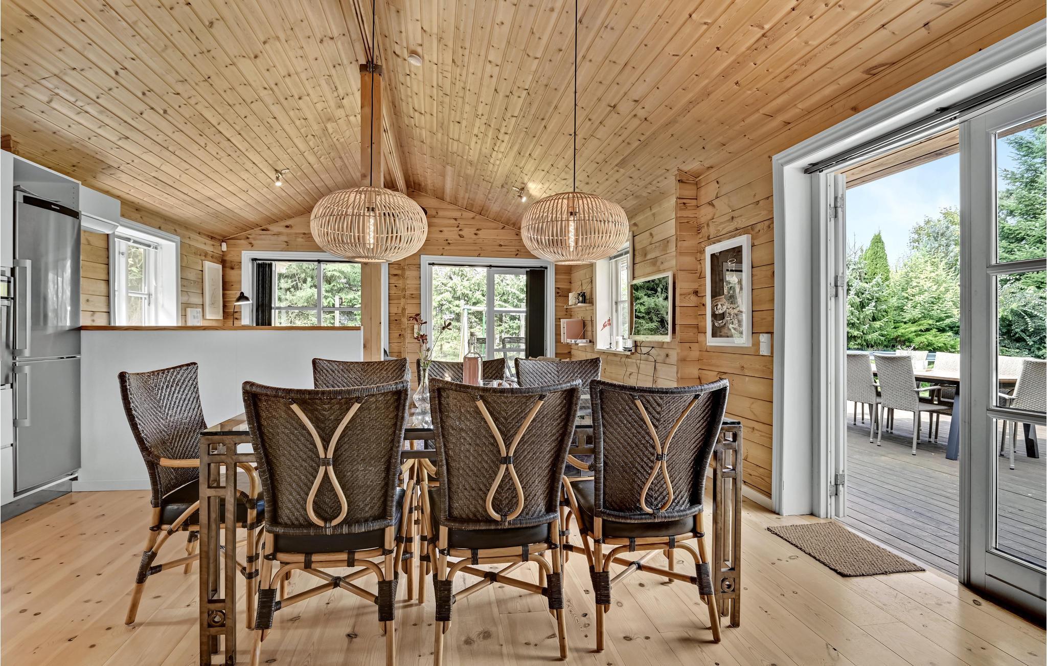 Nyd en hyggelig familieferie i det rummelige bjælkehus Diana med aktivitetsrum og vildmarksbad ved Ebeltoft.