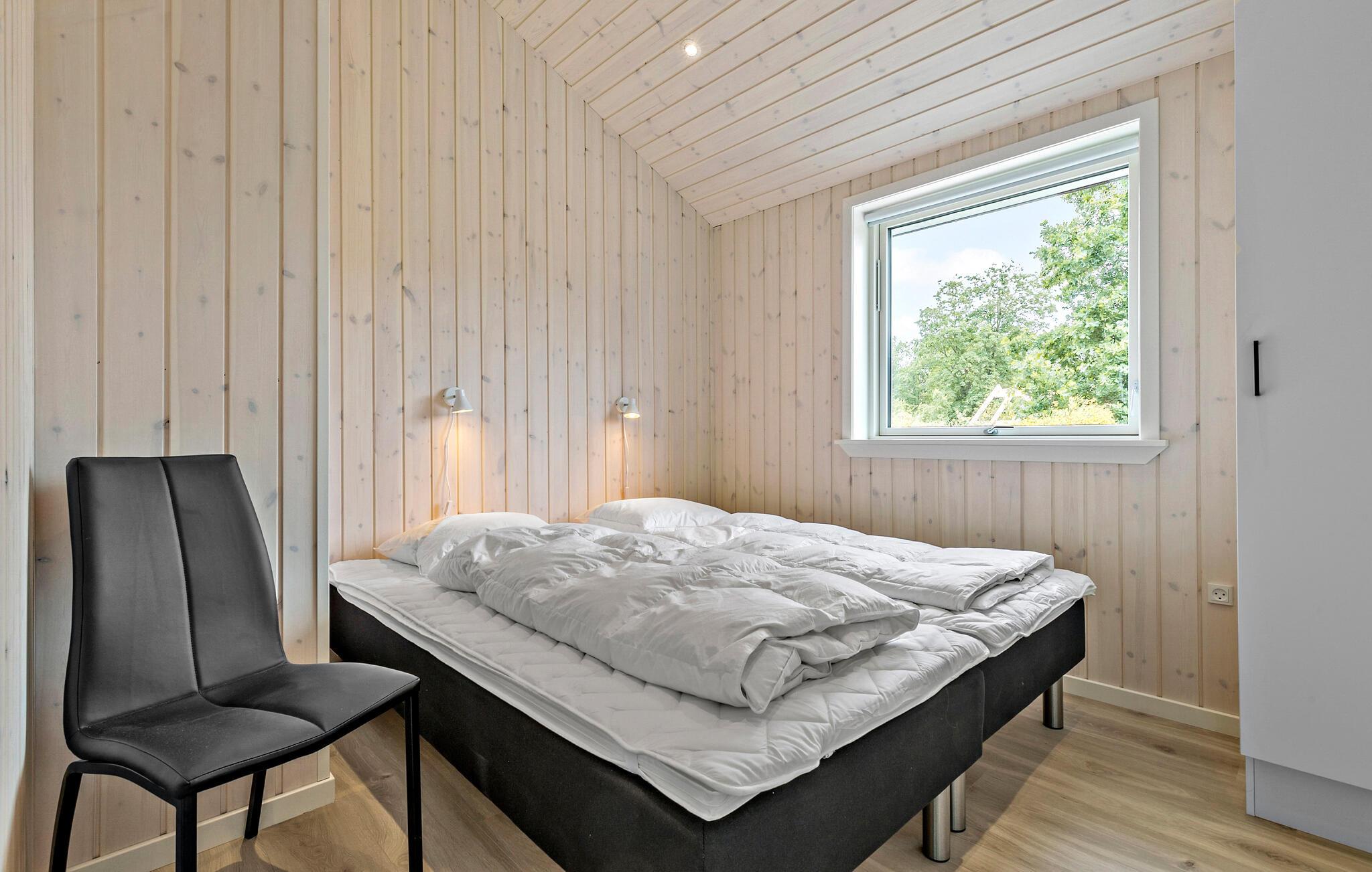 Dette eksklusive feriehus med indendørs spabad og sauna ligger idyllisk i smukke naturomgivelser i Fuglslev. Dette flot designede hus byder på en lys og luftig atmosfære med elegant minimalisme. Nyd den smukke udsigt til naturen gennem den store vinduesfacade, som henter den smukke solnedgang helt ind i stuen. Har I brug for endnu mere afslapning, kan I nyde et glas vin i boblebadet indenfor efterfulgt af en tur i saunaen. Den ugenerte have er et godt legested for børn, og på terrasserne finder I både sol, skygge og læ i løbet af dagen.