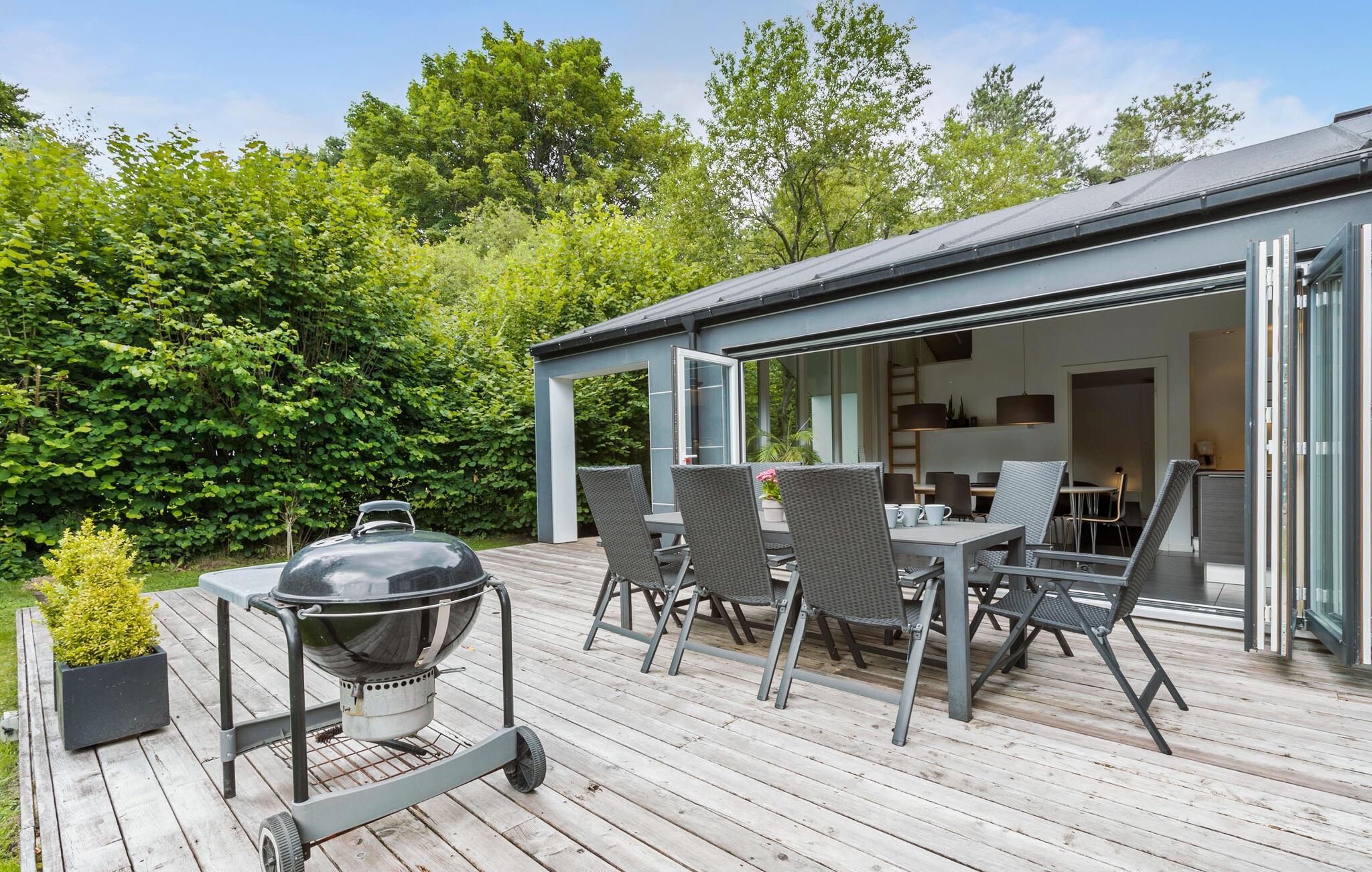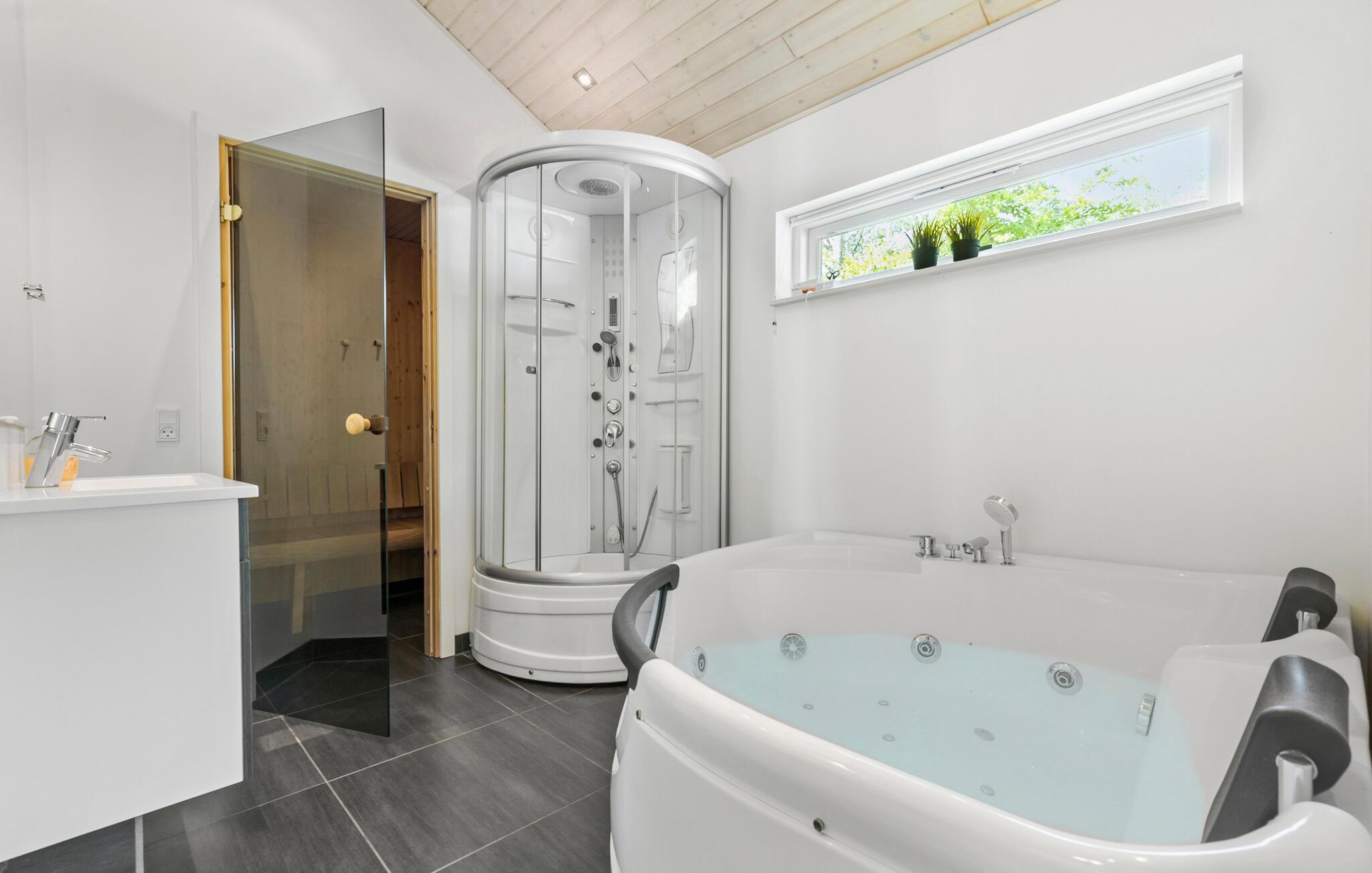Når solen er fremme, kan I trække ud på den rummelige terrasse, hvor I også kan grille på de lune sommeraftener. Skal I gøre noget godt for jer selv, er det ren forkælelse at sætte sig til rette i husets sauna eller spabad.