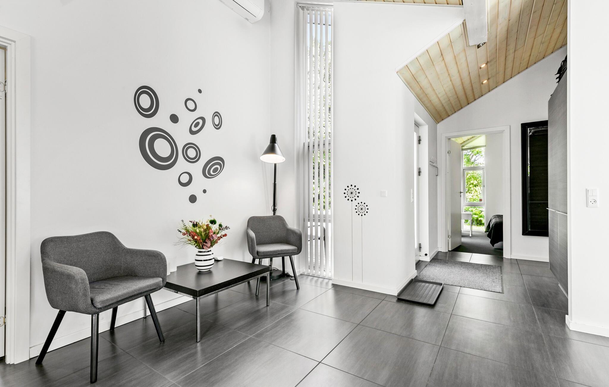 I får både fredfyldt natur og en toptunet bolig på denne ferie i skønne Fuglslev ved Ebeltoft. Her venter dette elegante hus, hvor I kan lade op mellem en masse spændende udflugter på Djursland. Huset er lækkert og moderne med stilrent inventar i en flot mørkgrå nuance og store vinduespartier, der lukker lyset og haven ind i boligen. Begynd dagene med at gøre morgenmaden klar i det veludstyrede køkken og find senere sammen om at tilberede den store feriemiddag samme sted. Efter dagens eventyr kan I vende hjem til jeres komfortable bolig og læne jer tilbage i de bløde møbler med en god bog, mens ilden knitrer i brændeovnen.