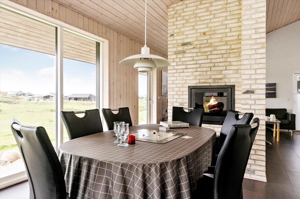 Når du træder ind i Bræmmen 8, bliver du mødt af en lys og indbydende indretning, der sætter tonen for din ferie. Det moderne sommerhus er bygget med fokus på kvalitet og funktionalitet, og den åbne planløsning mellem køkken, spiseplads og stue skaber en harmonisk og rummelig atmosfære. Store vinduespartier lader dagslyset strømme ind og giver et dejligt lysindfald i hele huset, så du kan nyde den smukke udsigt over landskabet. Køkkenet er pænt og veludstyret, og det åbner op til spisepladsen, hvor du kan samles omkring bordet og hygge dig med god mad og samtale. I stuen er der en brændeovn, som indbyder til hygge på de kølige aftener, og du kan også finde et roligt hjørne til afslapning. Sommerhuset har desuden to badeværelser, hvilket giver ekstra komfort, og forstuen med vaskemaskine og tørretumbler gør praktiske opgaver lettere under ferien.