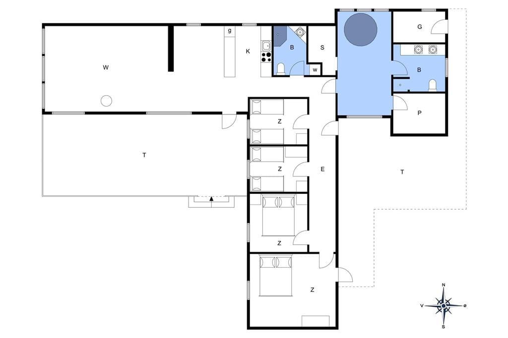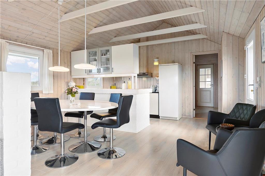 Sommerhuset er smagfuldt og godt indrettet med et stort køkken-alrum, fire soveværelser og to badeværelser. Selvom familiens medlemmer laver forskellige aktiviteter, så giver det åbne køkken-alrum gode muligheder for at være sammen alligevel. Hvad enten man står i køkkenet, spiller brætspil eller sidder i sofa-afdelingen og nyder varmen fra brændeovnen, er man sammen og kan nyde hinanden og ferien. I tilknytning til det ene badeværelse er en stor og rummelig standvandsspa samt adgang til en sauna. Det er ikke svært at forestille sig, hvordan man i disse rammer kan komme helt ned i gear og virkelig få sig en afslappende ferie!
