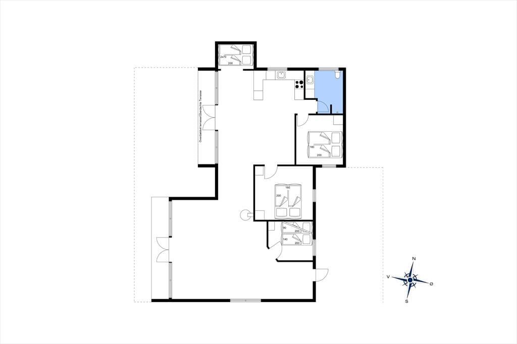 Der er udgang til haven fra både stue og alrum, og på de lune sommerdage kan I lade dørene stå åbne, så inde og ude på det nærmeste smelter sammen. Herude kan I nyde de fredfyldte omgivelser i fulde drag på terrassen eller på den store græsplæne. Når det er tid til frokost, kan den naturligvis serveres i det grønne, og på den vestvendte terrasse kan servere aftensmaden med den nedgående sol som bagtæppe. Det er sommerhusliv, når det er bedst.