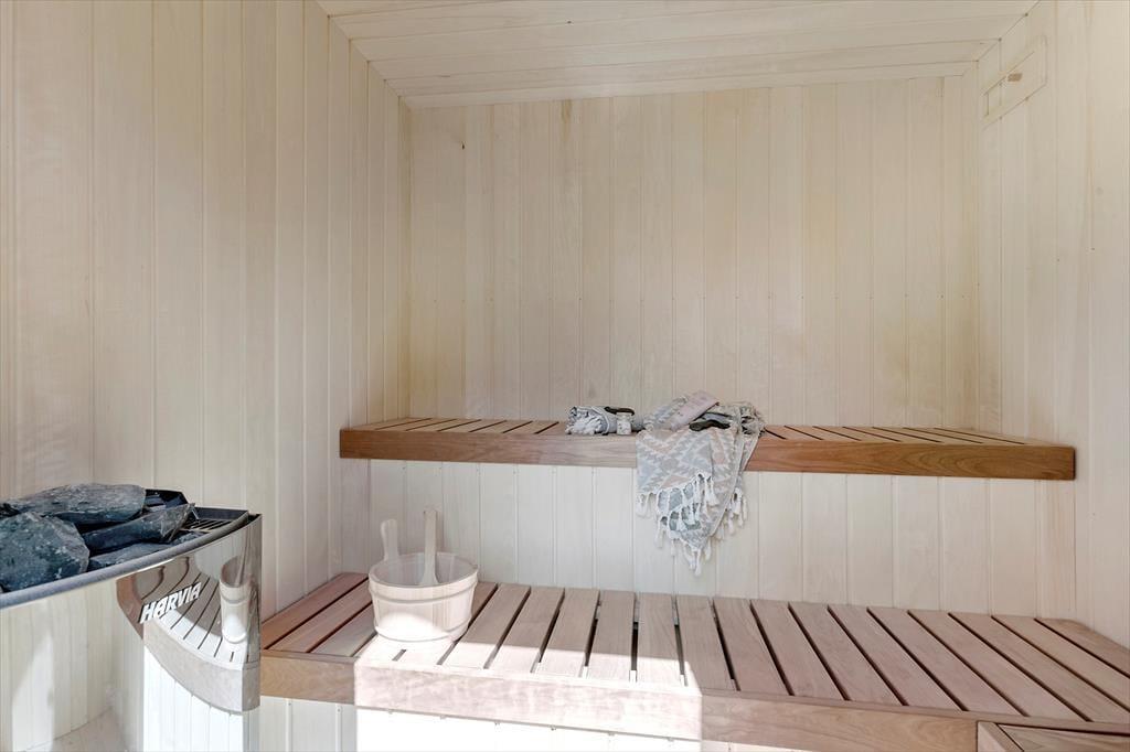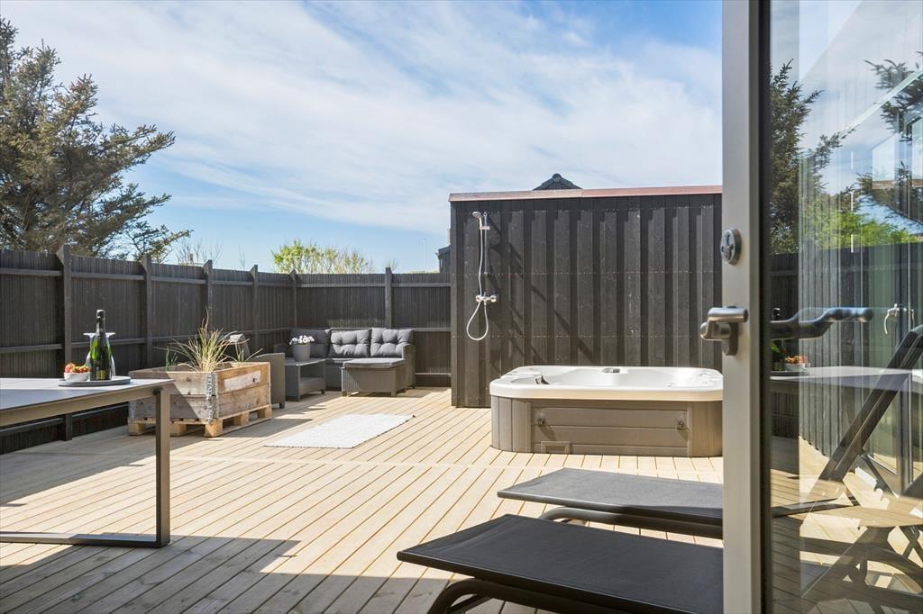 Udemiljøet lever bestemt også op til husets høje standard. Der er en gasgrill, og på terrassen er der sørget for komfortable havemøbler og liggestole, så I kan samles om et godt måltid mad eller nyde en tilbagelænet stund i solen. Afslapningsstunderne kan også foregå i wellnessområdet, der byder på et udendørs spabad.