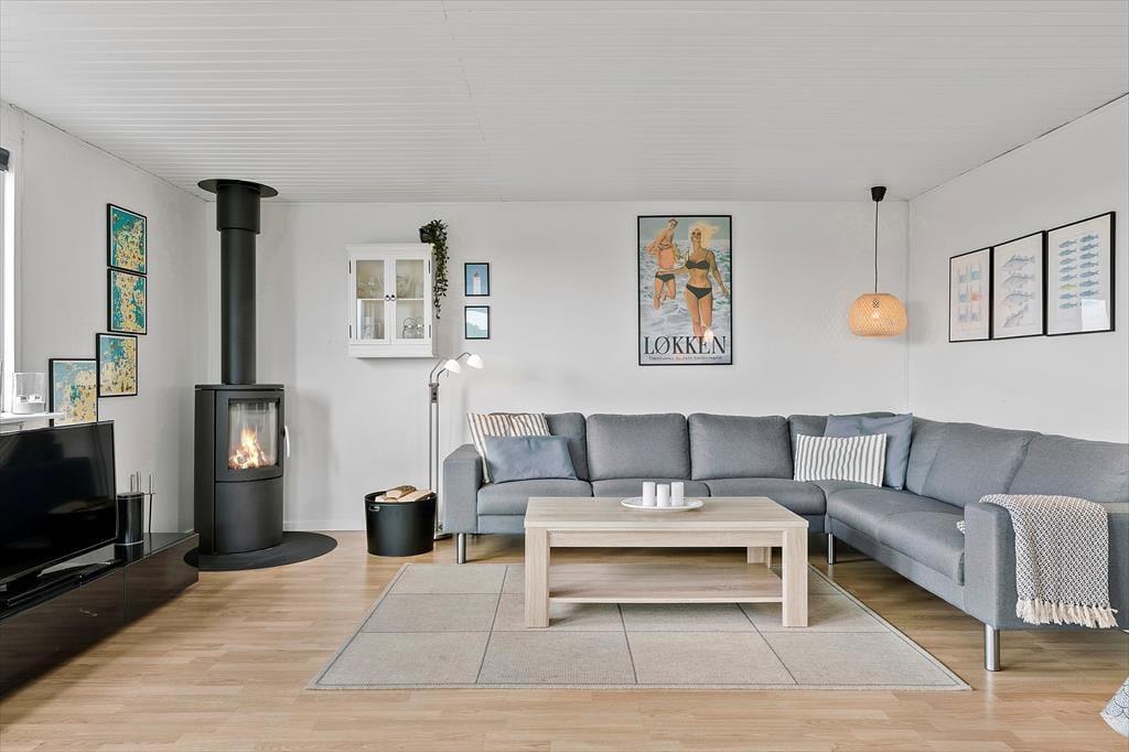 I får god plads at brede jer på i dette lyse og velindrettede sommerhus, som ligger godt placeret på en stor, solrig grund med både gårdhave og skønne terrasser. Fra huset er der få hundrede meter til Vesterhavet, og I kan køre til den hyggelige ferieby Løkken på under fem minutter.