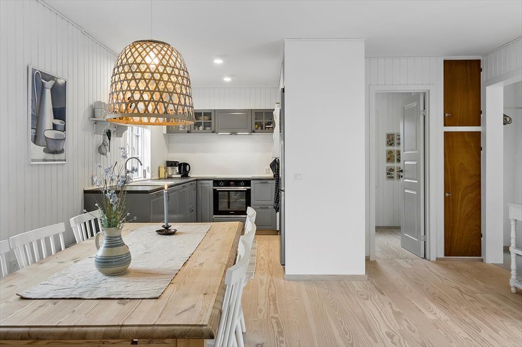 Nærmere bestemt er der tale om et klassisk træsommerhus på 73 m2, der er blevet grundigt renoveret i 2022. Efter moderniseringen har alle rum et lyst og indbydende udtryk med hvidmalede trælister på væggene, hyggeskabende nipsgenstande og nøje udvalgt møblement, der passer perfekt til husets ånd og atmosfære. I opholdsrummet er det fristende straks at sætte sig til rette i sofaen med en god kop kaffe – eventuelt med ild i brændeovnen og en god film på fladskærmen. I kan også gå i gang med at fremtrylle lækkerier i det flotte åbne køkken, inden I nyder maden og samværet om spisebordet. Og når det er ved at være sengetid, har I to gode soveværelser at gå til ro på. Et badeværelse hører også med til planløsningen, og her er der bruser samt vaskemaskine/tørretumbler.