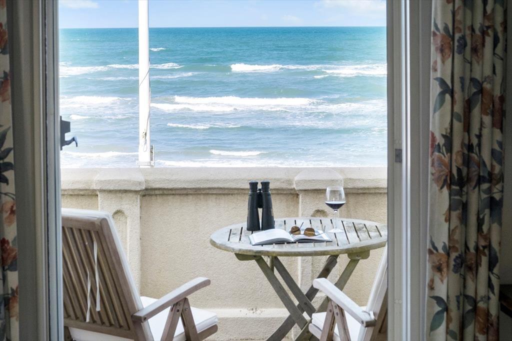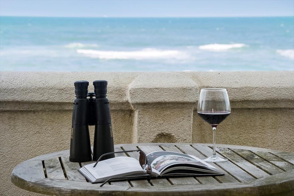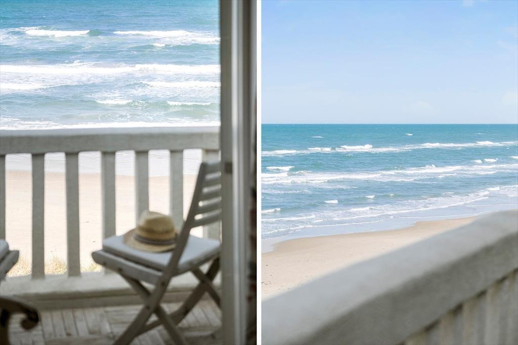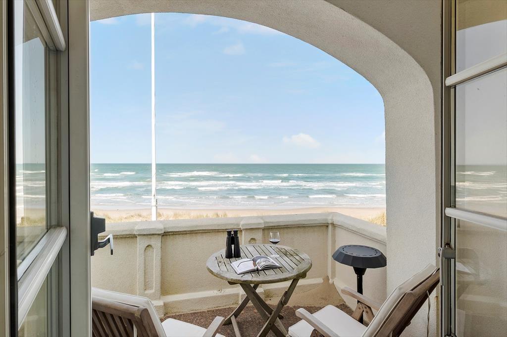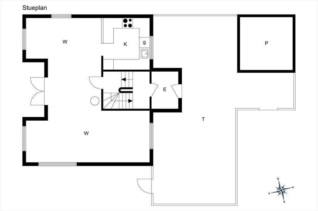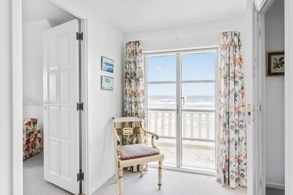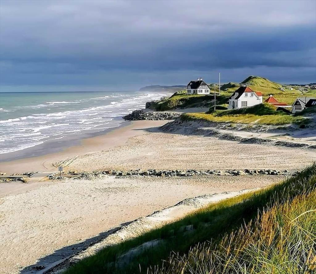 Sommerhuset ligger godt hævet over stranden på den kystsikrede grund, så I har et flot panoramavue over Vesterhavet og kyststrækningen fra den syd- og vestvendte del af terrassen. I kan også sætte jer på østsiden af huset, hvis I vil drikke kaffe i morgensolen eller søge læ for havbrisen.