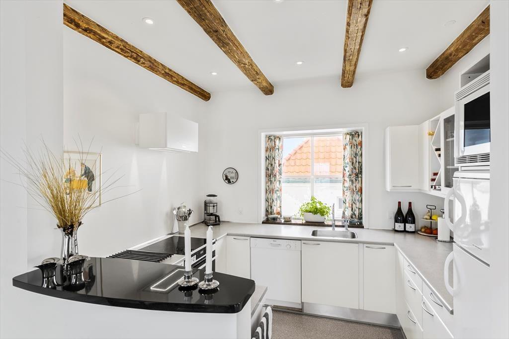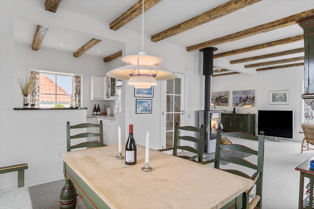 Ligesom Harald Fischer har I nu mulighed for at tage på badeferie i Strandbohus, der har bevaret sit flotte ydre med halvvalmet tegltag og pudset hvid facade. Inden døre er sommerhuset blevet opdateret, så I se frem til nogle komfortable dage – med alt, lige fra hurtig wi-fi-forbindelse og Apple TV til komfortable senge, brændeovn og et moderne køkken med nye køle-fryseskab fra 2024, Quooker og opvaskemaskine. En del af møblementet er dog mere klassisk – for eksempel det charmerende spisebord med tilhørende træstole, hvor I kan føle jer i kontakt med historien, når I nyder et godt måltid mad med udsigt til Vesterhavet. Køkken og spiseplads ligger i åben forbindelse med stuen, mens kælderen byder på et bryggers og et badeværelse med sauna. Endnu et badeværelse er placeret på første sal, hvor I også finder et mindre og to store soveværelser. Alt i alt er det en rummelig, lys og stemningsfuld feriebolig til fire personer.