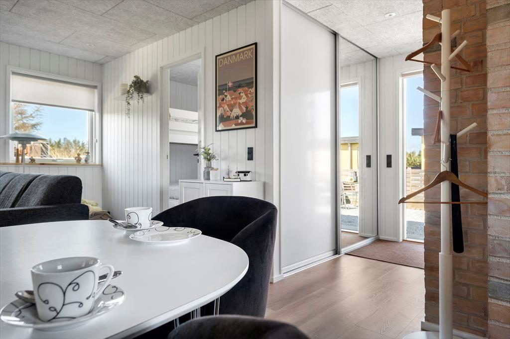 Det nyrenoverede sommerhus byder dig velkommen med en lys og lækker indretning, hvor alt fremstår gennemført og nyt. Køkken og stue ligger i åben forbindelse, hvilket skaber en dejlig sammenhæng i opholdsrummet og gør det nemt at samles om madlavning, brætspil og afslappende stunder. Det moderne køkken er designet med tanke på både funktionalitet og æstetik, og i stuen er stemningen rolig og behagelig – her kan du finde dig til rette i sofaen efter en lang dag ved stranden. Sommerhuset har flere gode soveværelser med komfortable senge, og dertil kommer et charmerende anneks med to ekstra sovepladser – perfekt til børnene eller de, der ønsker lidt mere privatliv. Med hele to flotte badeværelser er det let at være flere under samme tag, og med mulighed for opladning af elbil er huset også velegnet til dig, der ønsker en mere bæredygtig ferieform.