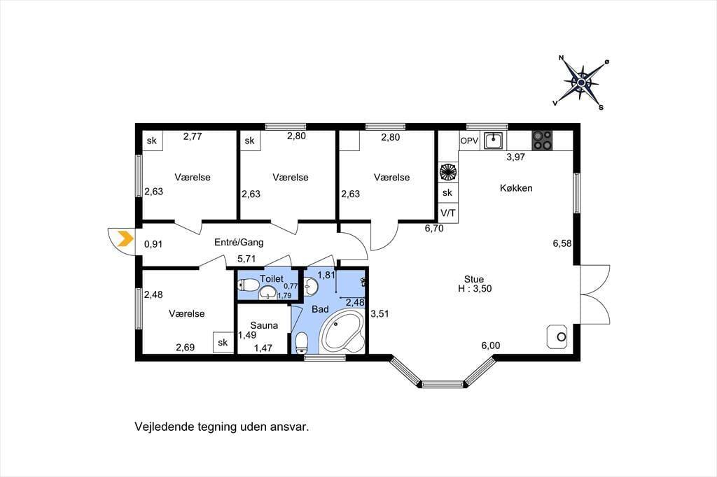 Sommerhuset har en skøn terrasseafdeling, hvor du kan nyde solen og den friske luft. Terrassen er perfekt til morgenmad under åben himmel, afslappende stunder med en god bog eller grillmiddage med familien, mens solen går ned. Den rolige beliggenhed og den store grund giver masser af plads til leg og boldspil. Når du har lyst til at mærke sandet mellem tæerne, ligger stranden blot en kort gåtur væk, så du nemt kan tage en dukkert i Vesterhavets klare vand. Her kan du nyde lange gåture langs kysten og lade bølgernes brusen berolige dine sanser.