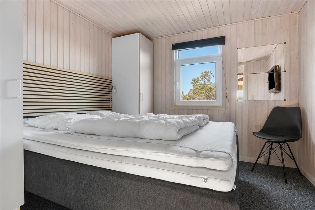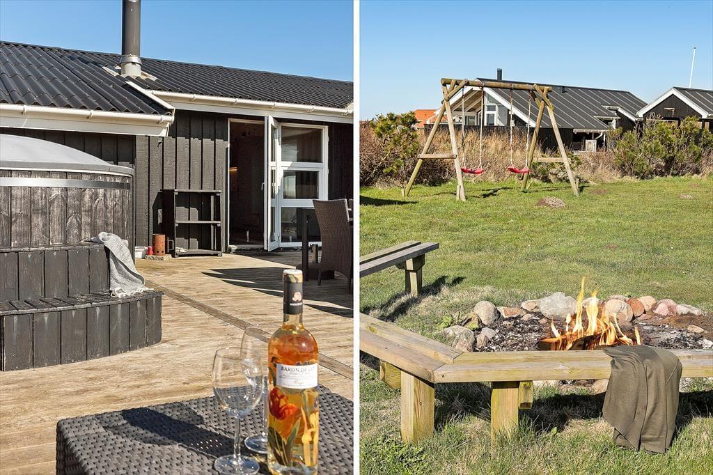 Udendørs er der masser af plads til både leg og afslapning. Den store terrasse er perfekt til både solbadning om dagen og hyggelige aftener med grill og stearinlys. Grunden omkring sommerhuset er stor og rummelig, og her kan børnene lege frit og spille bold, mens de voksne nyder den fredelige atmosfære, eller i kan tage et spil bordfodbold i udhuset. Med kun få minutters gang til Vesterhavet er det nemt at komme ned til stranden og mærke den friske havluft og høre bølgernes brusen. Om aftenen kan I samle jer på terrassen og nyde en god middag, mens solen går ned over horisonten.