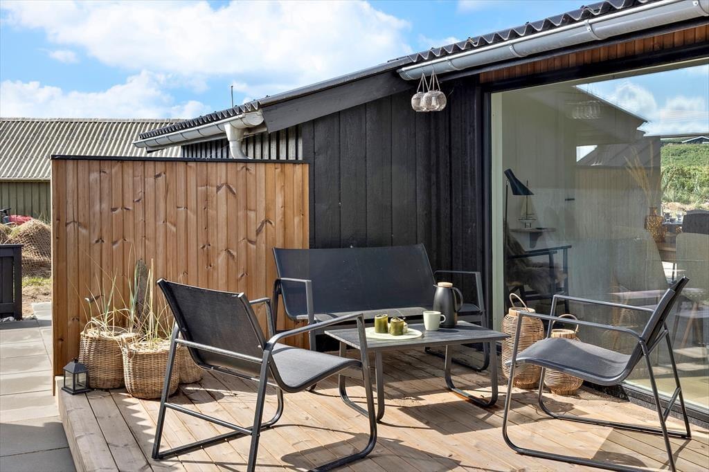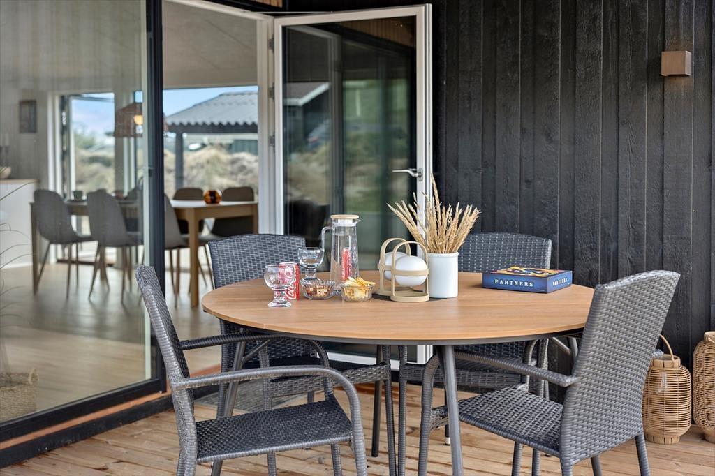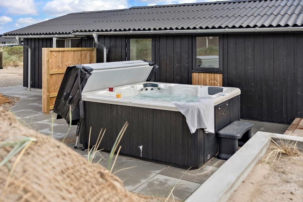 Terrasserne er hjertet i udelivet her på Tranevej 17. Her kan du starte dagen med en kop kaffe i morgensolen, nyde frokosten under åben himmel og runde aftenen af i det varme udendørs spabad, mens du kigger op på stjernerne. De to overdækkede terrasser giver mulighed for at være ude – uanset vejret – og skaber hyggelige rammer for lange sommeraftener. Spabadet er en luksuriøs detalje, som giver ferien et ekstra pift – og det bliver hurtigt et fast ritual at lade sig synke ned i det varme vand efter en lang dag i den friske havluft.
