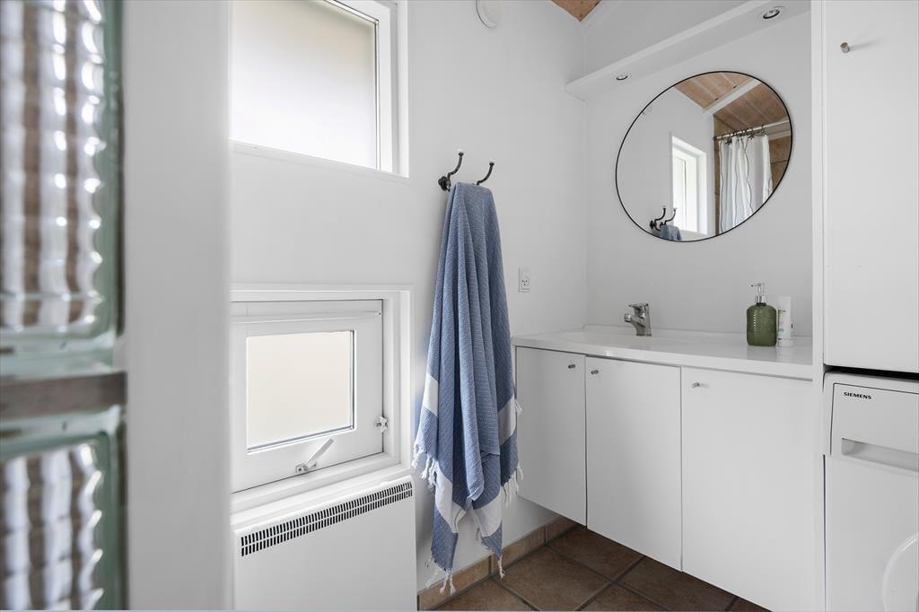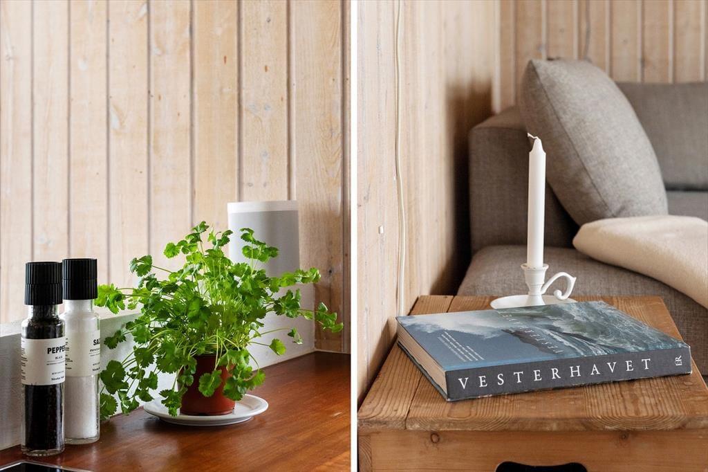 Indendørs bliver du mødt af en lys og indbydende indretning, hvor der er kælet for detaljerne og skabt en rar feriestemning. Det fantastiske lysindfald fra de store vinduespartier fylder rummet med varme og gør det nemt at følge dagens gang fra morgen til aften – uanset om solen skinner eller skyerne driver over himlen. Køkkenet ligger i åben forbindelse med stuen, og netop denne åbne planløsning skaber et naturligt samlingspunkt for både samtale, fælles madlavning og afslapning. Duften af friskbrygget kaffe om morgenen, lyden af brændeovnen der knitrer i aftentimerne, og følelsen af at være sammen – det hele går op i en højere enhed her. Sommerhuset indeholder to gode soveværelser samt et pænt badeværelse – lige til at flytte ind i og nyde med det samme.