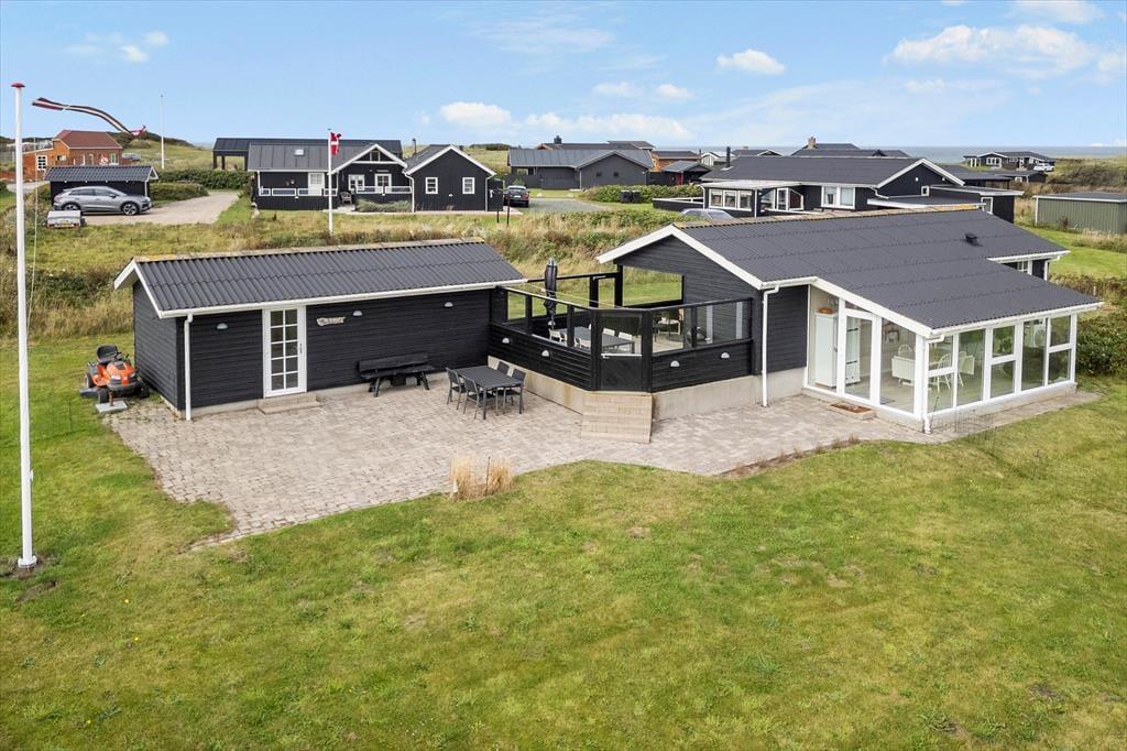 Her er rammerne til en ferie, hvor udelivet virkelig kan nydes. På terrassen kan I samles om grillmiddage eller slappe af i havemøblerne, og den praktiske læmur skaber en hyggelig oase, hvor I kan sidde uforstyrret, selv når vestenvinden rusker. Haven giver plads til leg og boldspil for familiens yngste, mens de voksne kan nyde solens varme stråler eller en kølig drink i skyggen. Når aftenen falder på, er det oplagt at trække ind i udestuen igen og nyde roen, mens mørket sænker sig over landskabet.