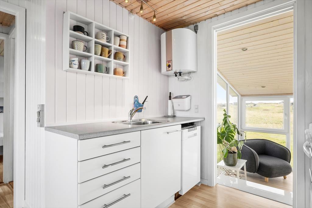 Sommerhuset er indrettet i en lys og venlig stil, der indbyder til ro og hygge, fra det øjeblik du træder indenfor. I stuen er der plads til samvær, hvor I kan slappe af med brætspil eller blot nyde hinandens selskab. Husets store udestue er et særligt plus – her kan du sidde i læ, nyde udsigten over det åbne landskab og følge dagens skiftende lys, mens du drikker en kop kaffe eller læser en bog. I det rummelige anneks er der ekstra sovepladser, hvilket gør huset velegnet til både familier og vennepar, der ønsker at holde ferie sammen. Hele huset udstråler en varm og hjemlig atmosfære, der gør det let at falde til ro og nyde ferielivet i Furreby.