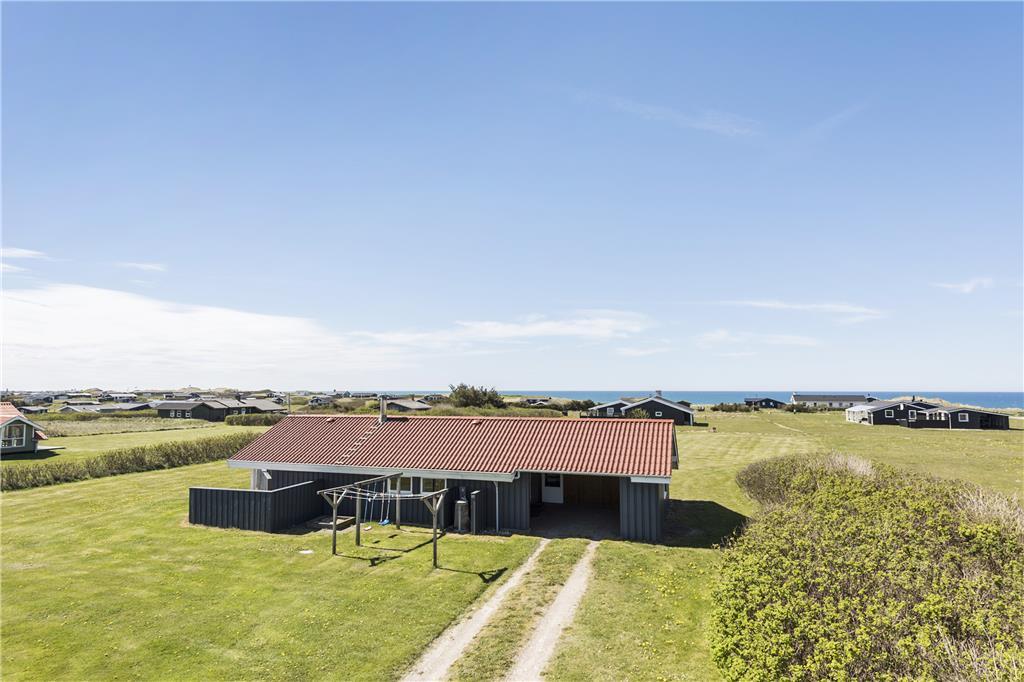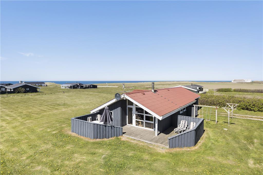 På den store åbne grund, er der masser af plads til leg og boldspil, og de mindste kan boltre sig i sandkassen. Sommerhuset har delvist afskærmede og overdækkede terrasser mod syd og øst, samt en mindre terrasse mod vest, hvilket giver perfekte betingelser for at nyde den danske sommer i fulde drag med solbadning, grillmåltider og ekstra lange og lune aftener. Der er havemøbler, liggestole og grill til rådighed i huset.