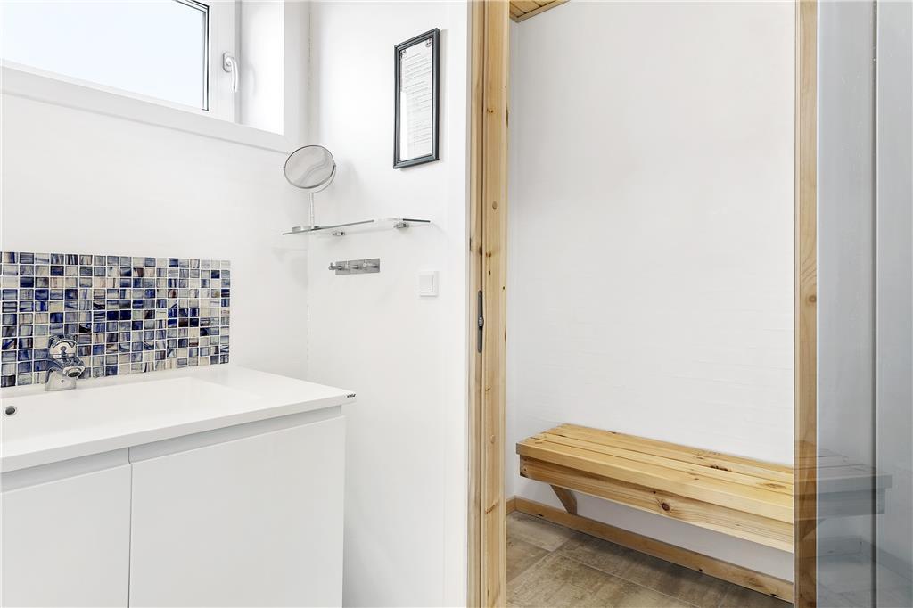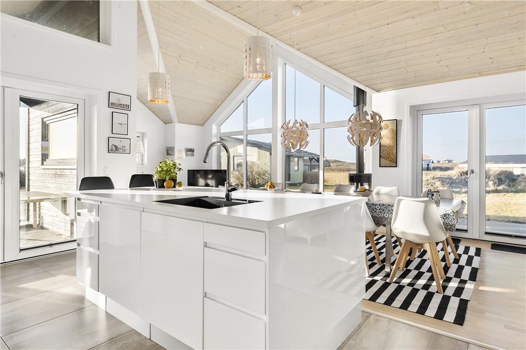 Sommerhuset er opført i 2015 og fremstår lyst og moderne indrettet med fokus på samvær. Den åbne stue og køkkenafdeling er et naturligt samlingspunkt, hvor I kan lave mad, spille spil eller hygge jer med en film, mens dagens oplevelser vendes. Fra aktivitetsrummet fører en stige op til en helt særlig ”udsigtshems”, hvor en hyggelig sofa indbyder til afslapning – og gennem vinduet får I en skøn udsigt over landskabet. Skal ferien krydres med ekstra forkælelse, finder I både spabad og sauna på det ene badeværelse, hvor I kan lade kroppen falde til ro efter en dag ved havet. For de aktive gæster er der et aktivitetsrum med både bordtennis og bordfodbold, hvor konkurrencelysten kan få frit spil.