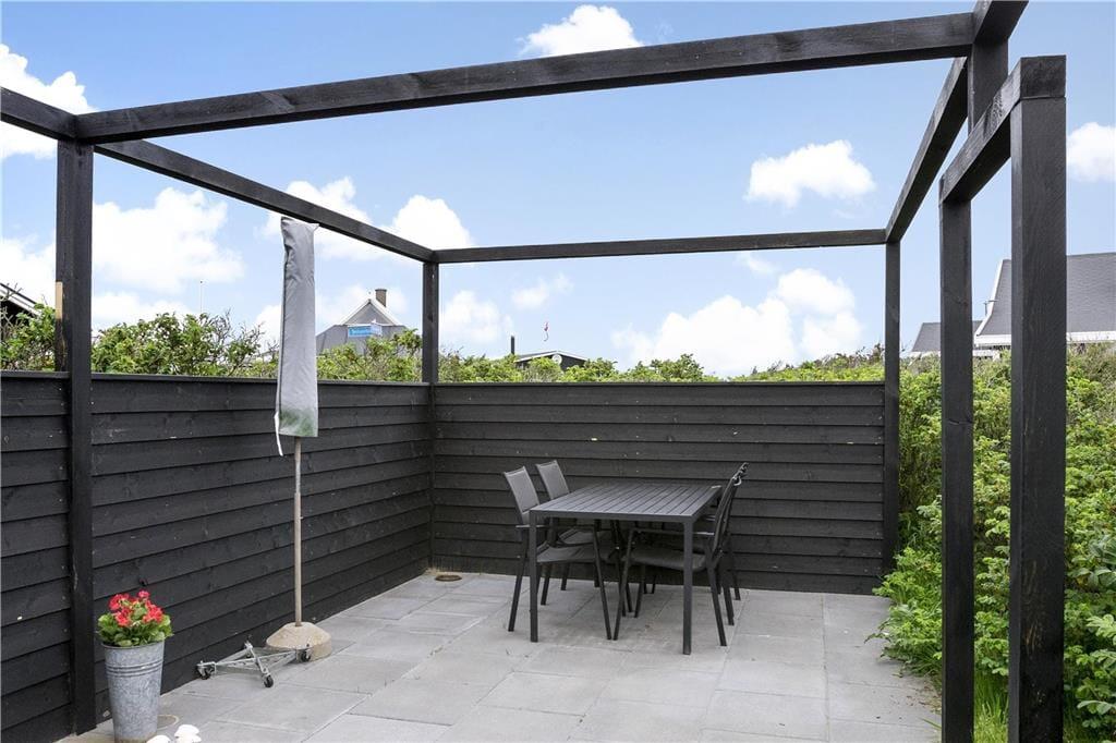 Sommerhuset ligger højt, på en flot havegrund med en meget velplejet græsplæne, hvor børnene kan lege tagfat og spille bold i timevis. Huset har flotte terrasser mod syd og vest, hvoraf den ene er delvist overdækket og den anden er med mulighed for solsejl, så man altid kan finde en plads i skyggen og i læ, da den er omgivet af glas-inddækning. 2019 er der bygget endnu en flot terrasse omgivet af høje hyben og stakit for læg og solsejl for skygge. Med den store hyggelige loungesofa på den vestlige del af terrassen, har man alle muligheder for at nyde de lange og forhåbentlig lune sommeraftener i husets smukke og rolige omgivelser.