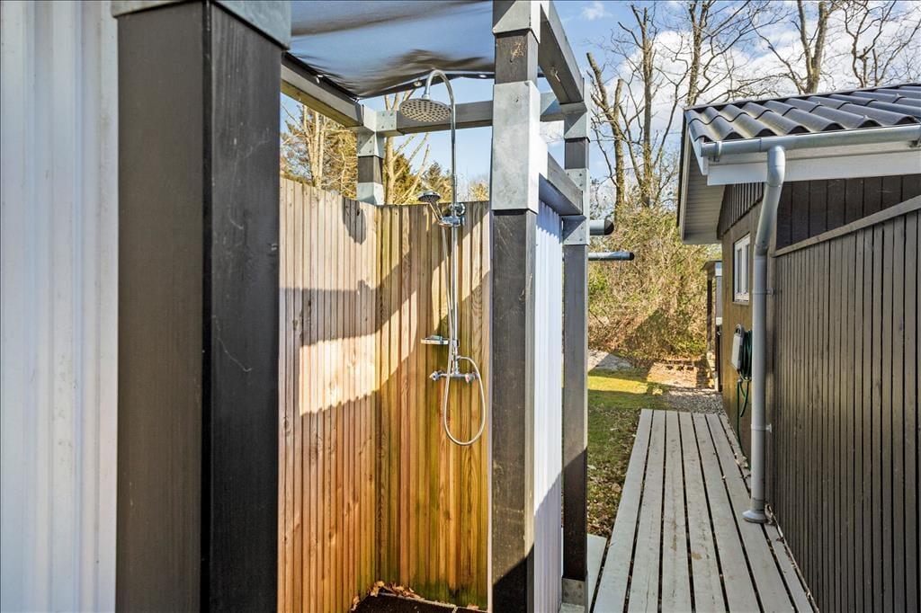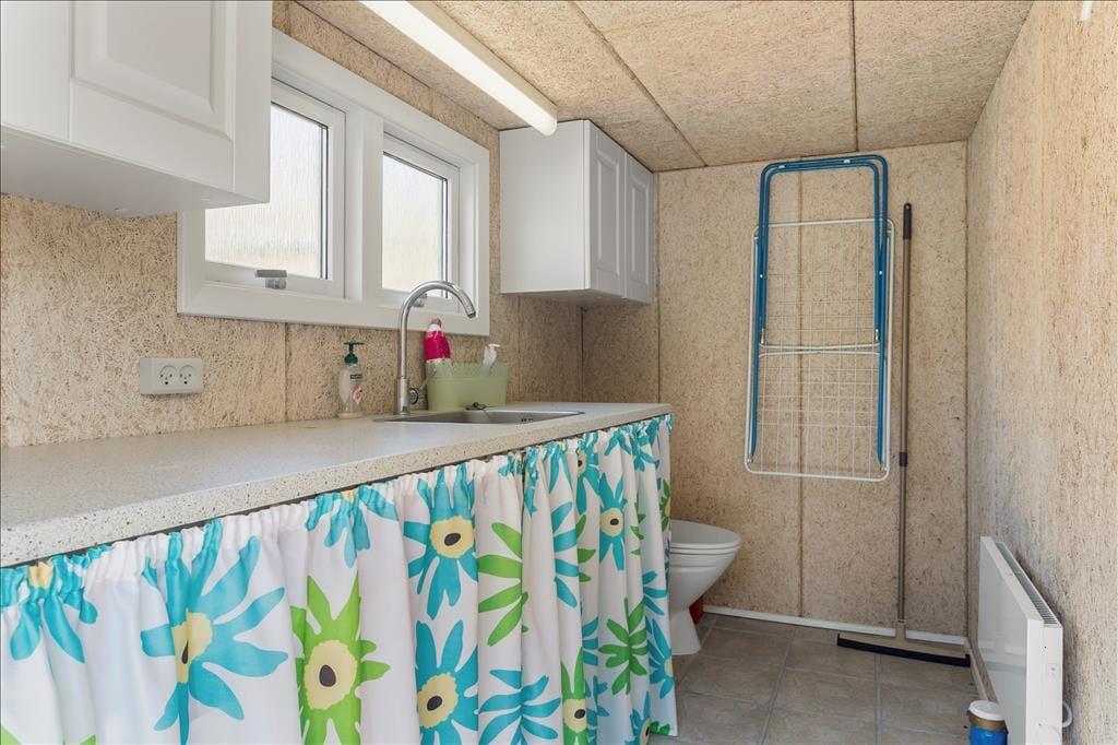 Hvis I elsker udeliv, frisk luft og grønne omgivelser, er haven et rent eldorado med vildmarksbad, udebruser, bålsted, udekøkken og en charmerende havepavillon – kort sagt alt, hvad hjertet kan begære af skønne faciliteter. Der er et stort depotrum med ekstra stort køleskab og fryser. Her er god plads til jeres ekstra bagage, cykler, surfbræt, mm. I forlængelse af depotrummet finder I et ekstra vaskerum med vaskemaskine og tørretumbler og et ekstra toilet.