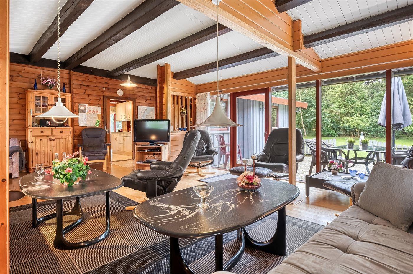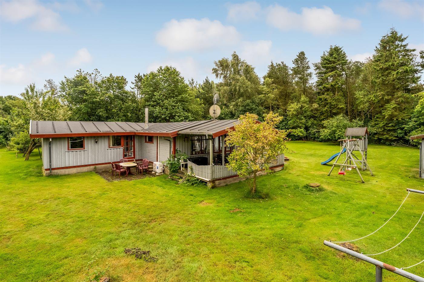 Ferieboligen er beliggende på en 2661 m² stor grund i skov/plantage. Der er 800 m til fjorden. Der er en badebro i nærheden. Nærmeste forretning er beliggende i en afstand af 5000 m. Der er en golfbane i en afstand af 14000 m. Til ferieboligen hører åbent terrasseareal. Desuden er der overdækket terrasse. Gynge. Sandkasse. Legetårn. Rutchebane. Grill til rådighed. Der er carport til rådighed. Parkering ved ferieboligen.