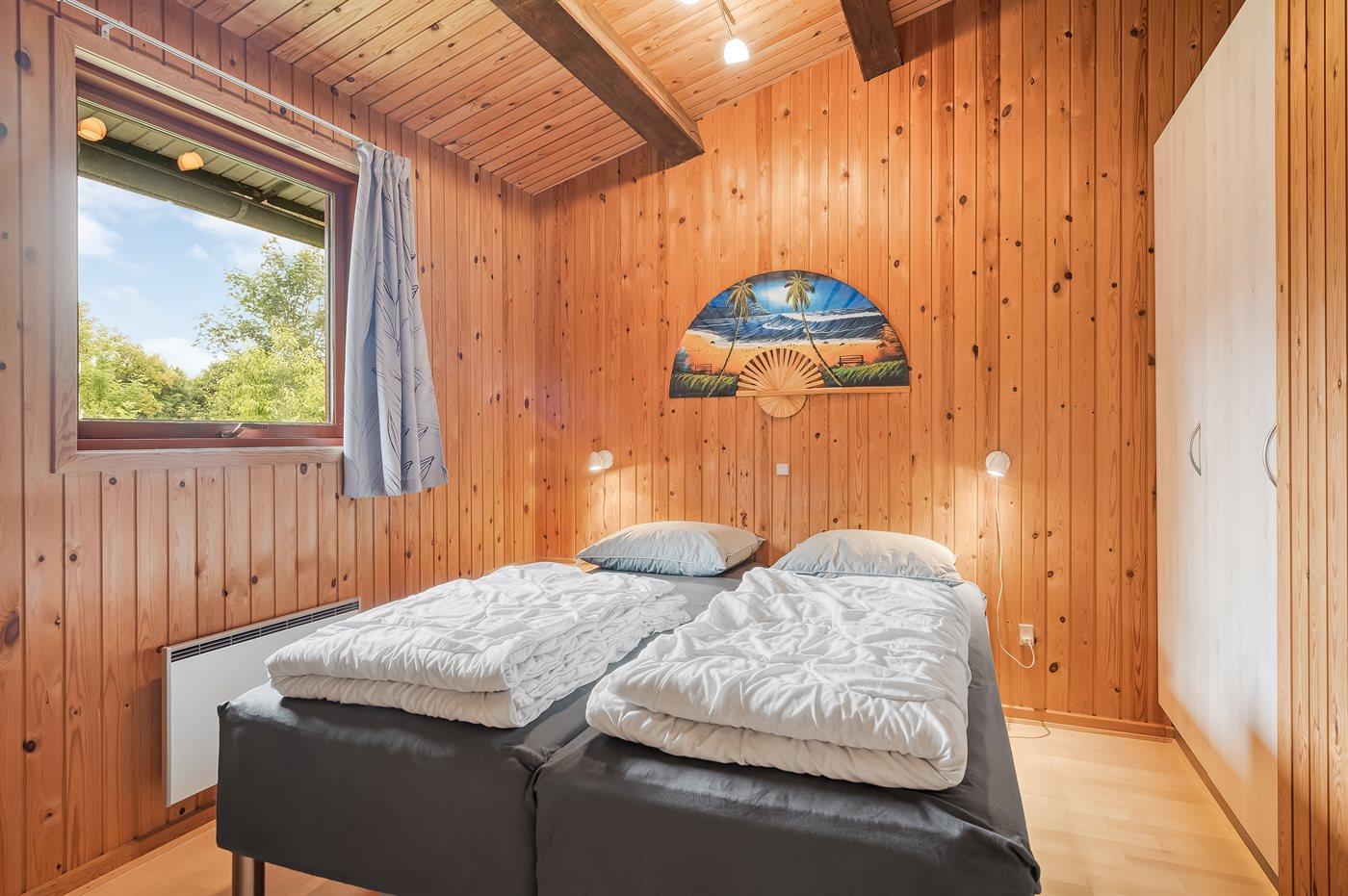 Der er i alt 4 soveværelser. Sovepladserne fordeler sig på: 4 sovepladser i dobbeltsenge. 2 sovepladser i enkeltsenge. 4 sovepladser i køjesenge. Derudover er der 1 stk. barneseng.