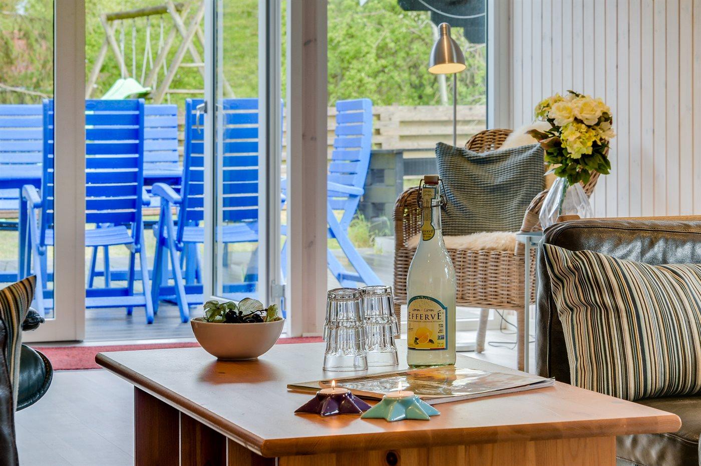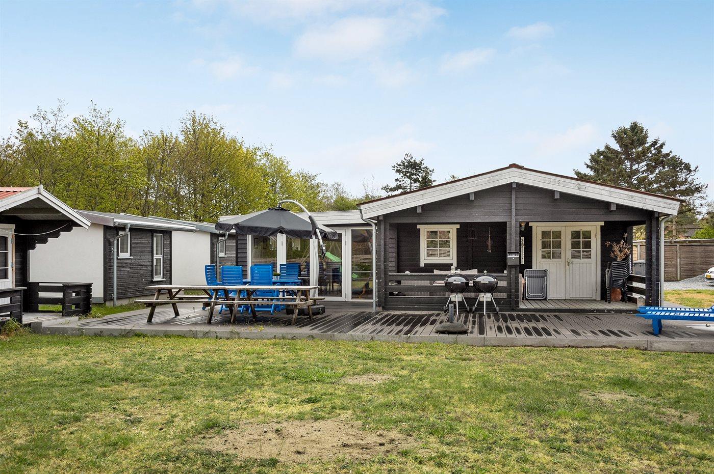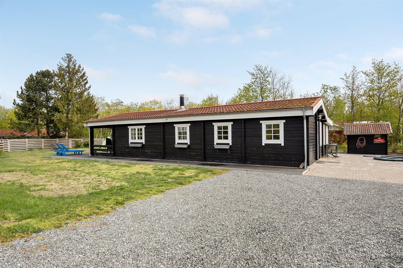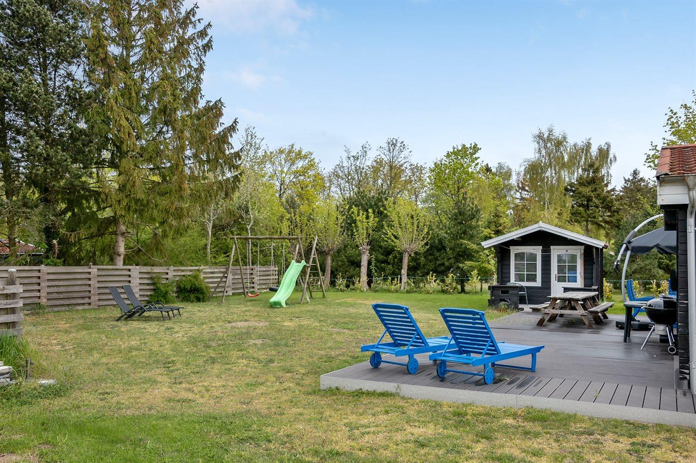 Ferieboligen er beliggende på en 1056 m² stor havegrund. Der er 300 m til havet. Nærmeste forretning er beliggende i en afstand af 5000 m. Til ferieboligen hører 150 m² terrasseareal. Desuden er der 20 m² overdækket terrasse. Gynge. Rutchebane. Udendørs bruser. Grill til rådighed. Parkering ved ferieboligen.