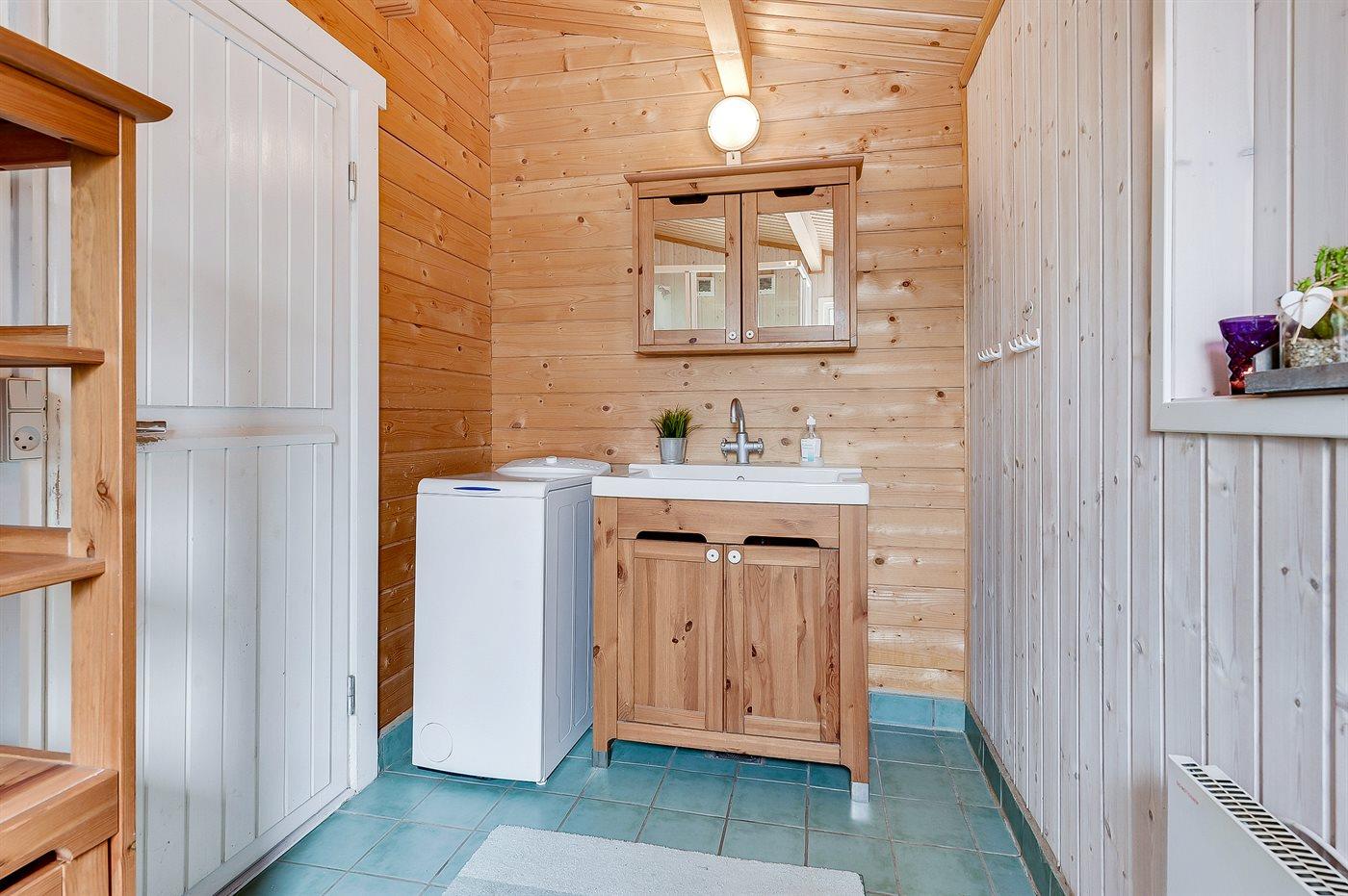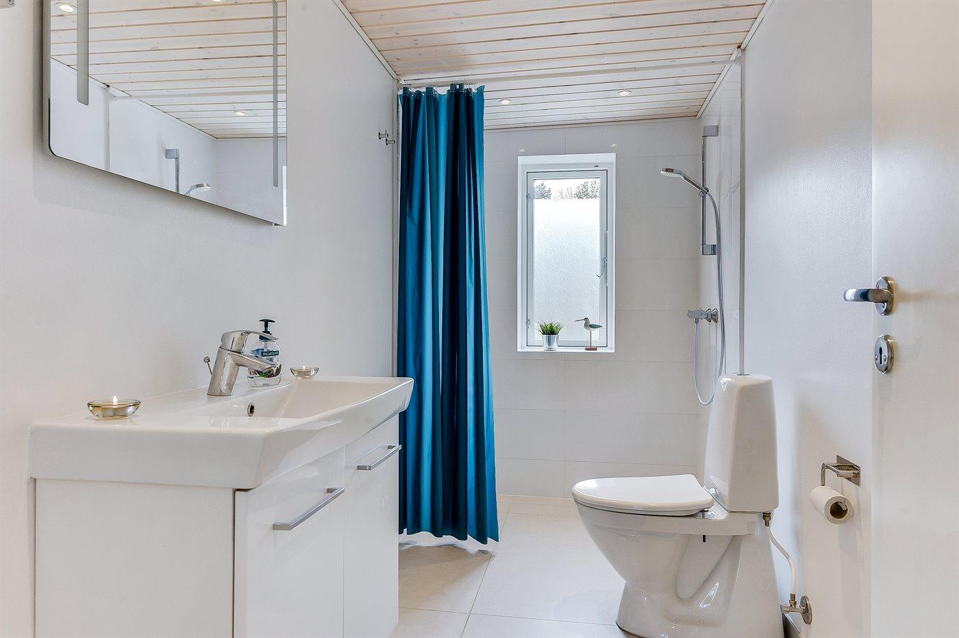 Der er 2 badeværelser med bruseniche og 2 toiletter I saunaen er der mulighed for afslapning.