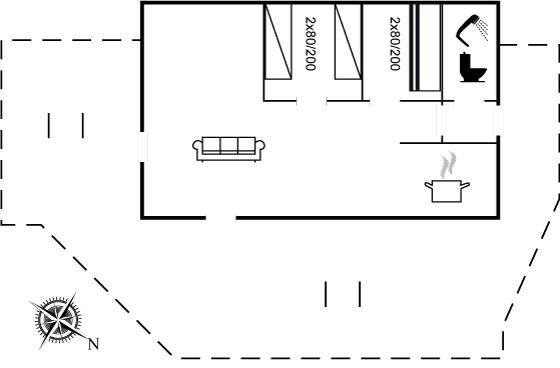 Der er i alt 2 soveværelser. Sovepladserne fordeler sig på: 2 sovepladser i enkeltsenge. 2 sovepladser i køjeseng.