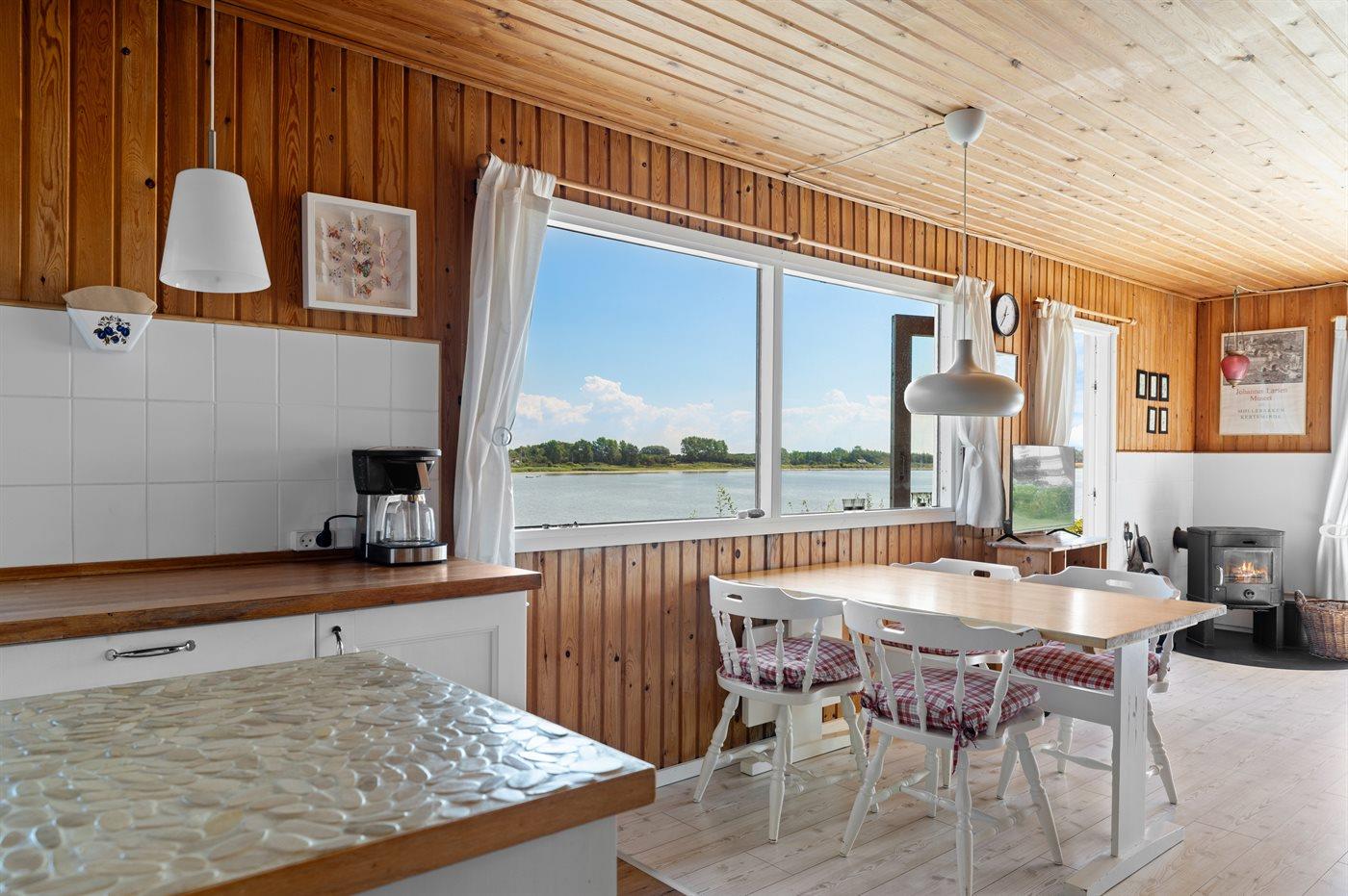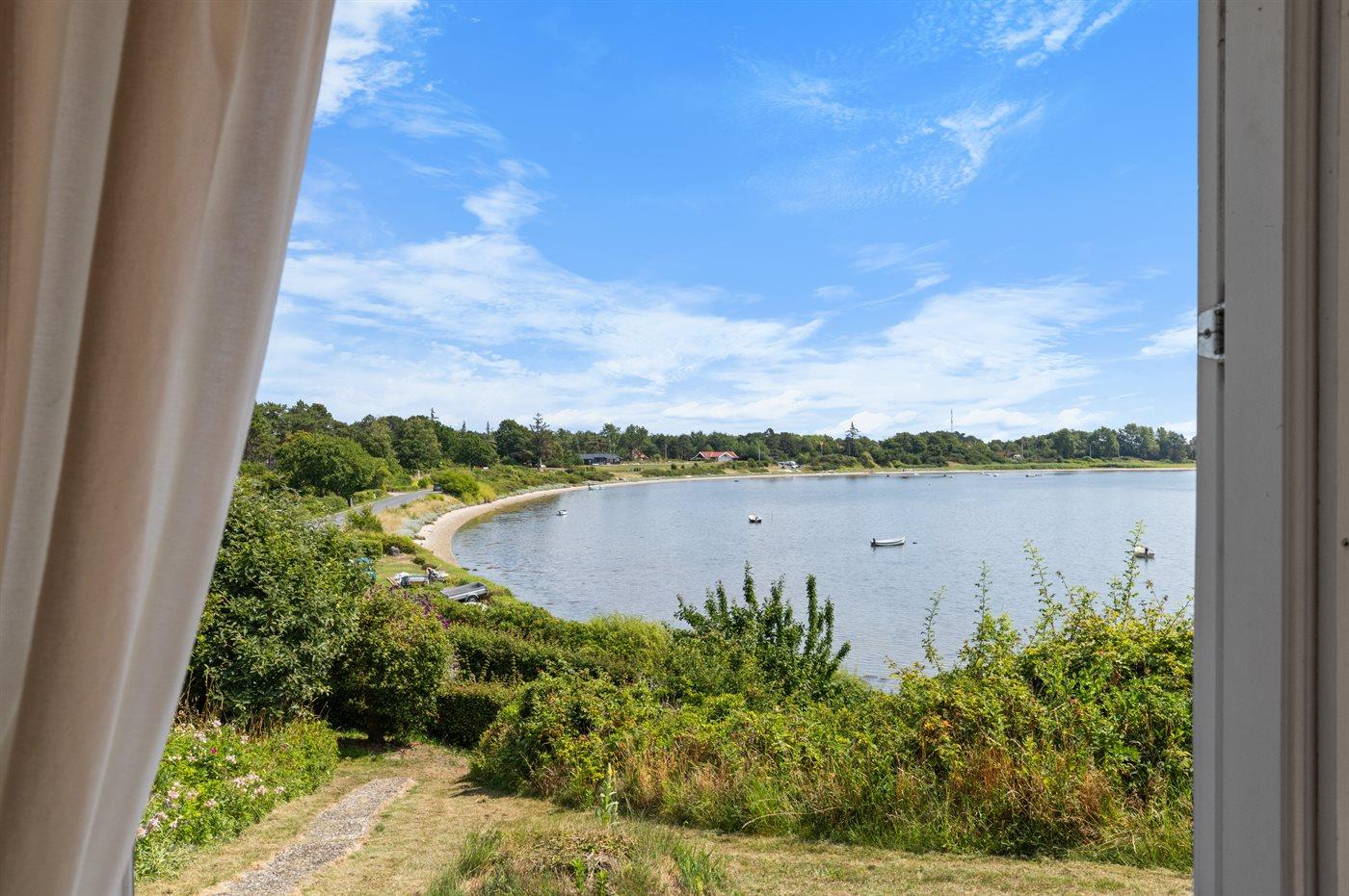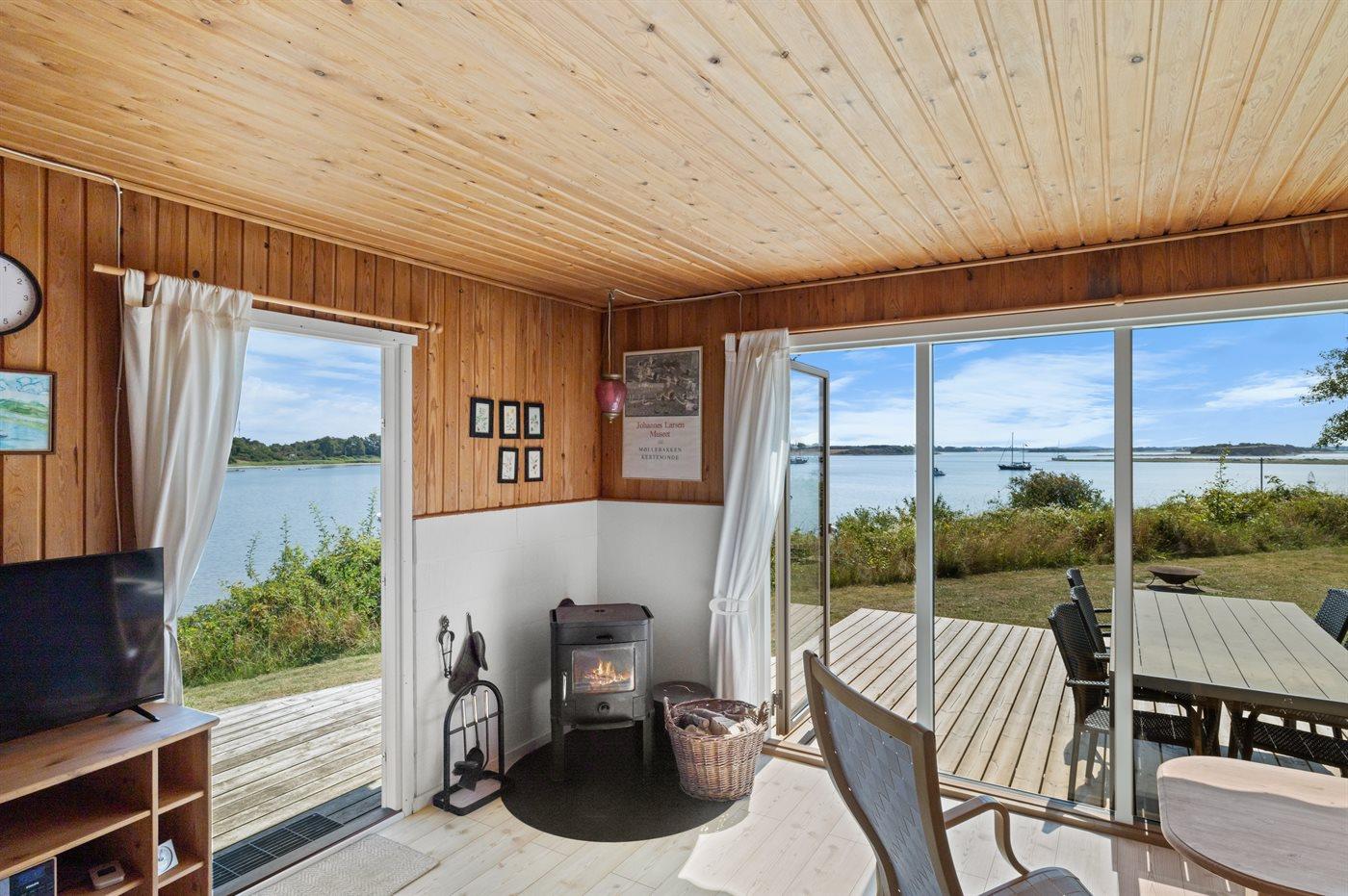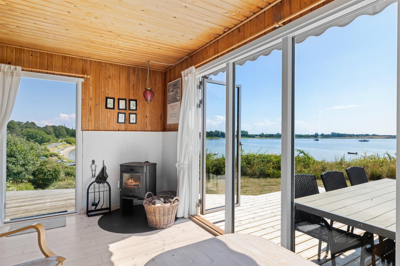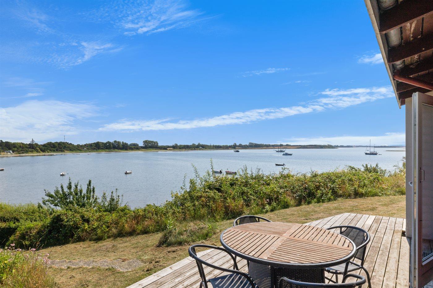 Charmerende sommerhus med den skønneste udsigt ud over vandet fra både huset og den sydvendte terrasse.