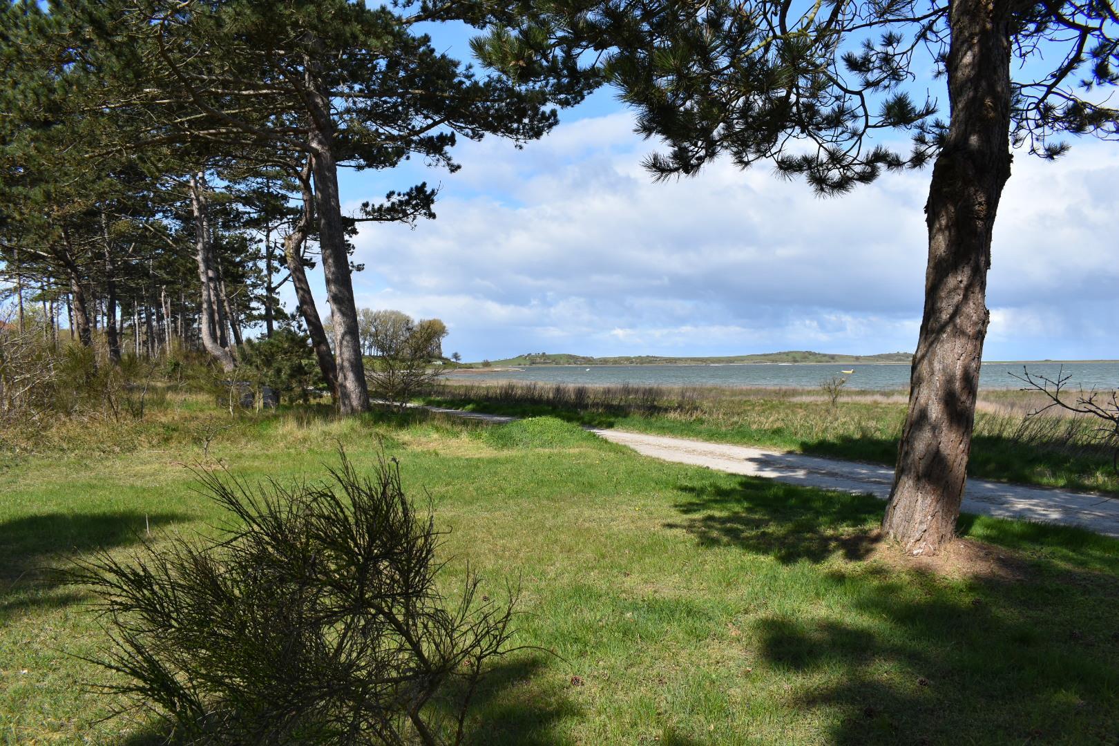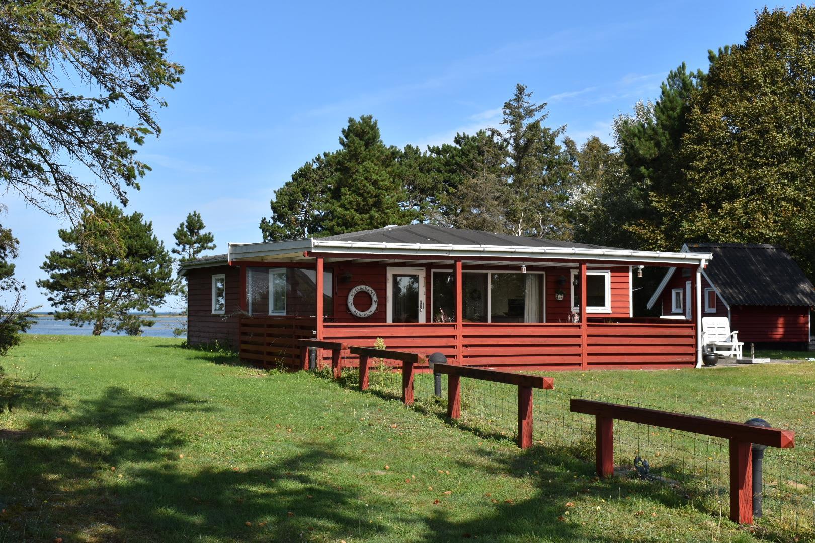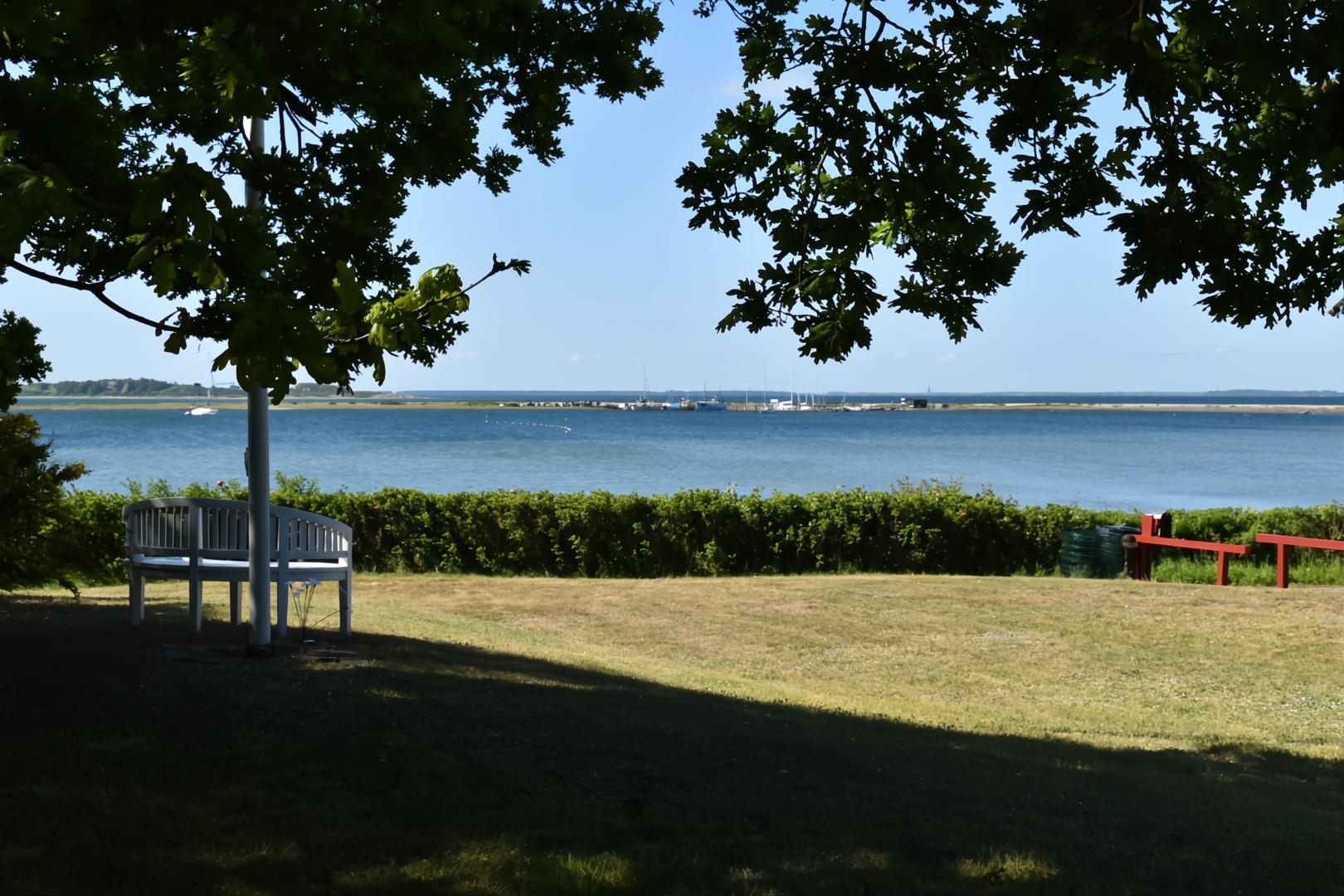 Fra sommerhuset kan du nyde udsigten til den private strand og den charmerende lille havn Korshavn mod syd. Mod nord venter en betagende panoramaudsigt over lagunen og det majestætiske landskab ved Fyns Hoveds spids.