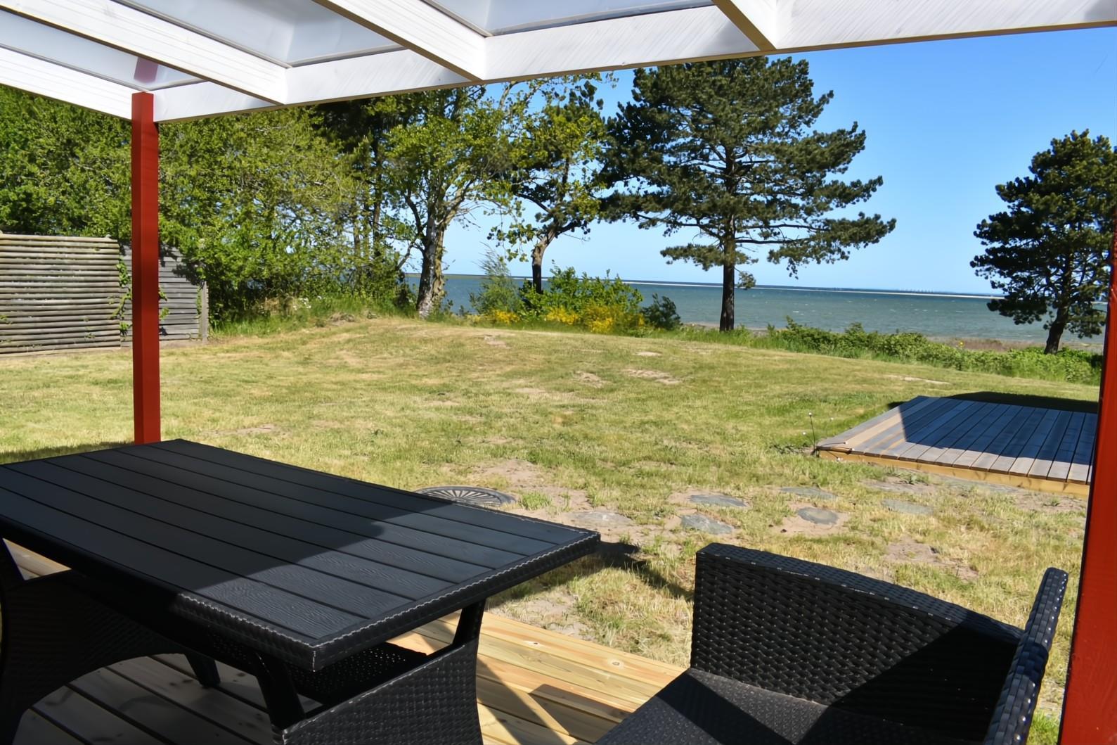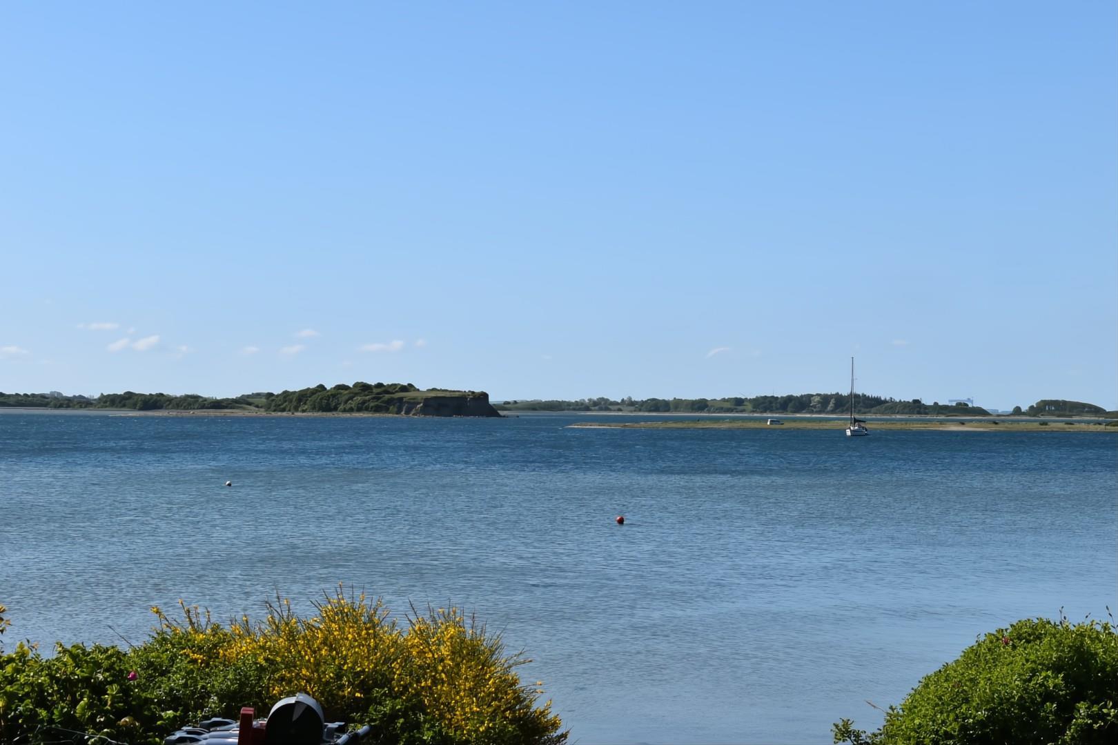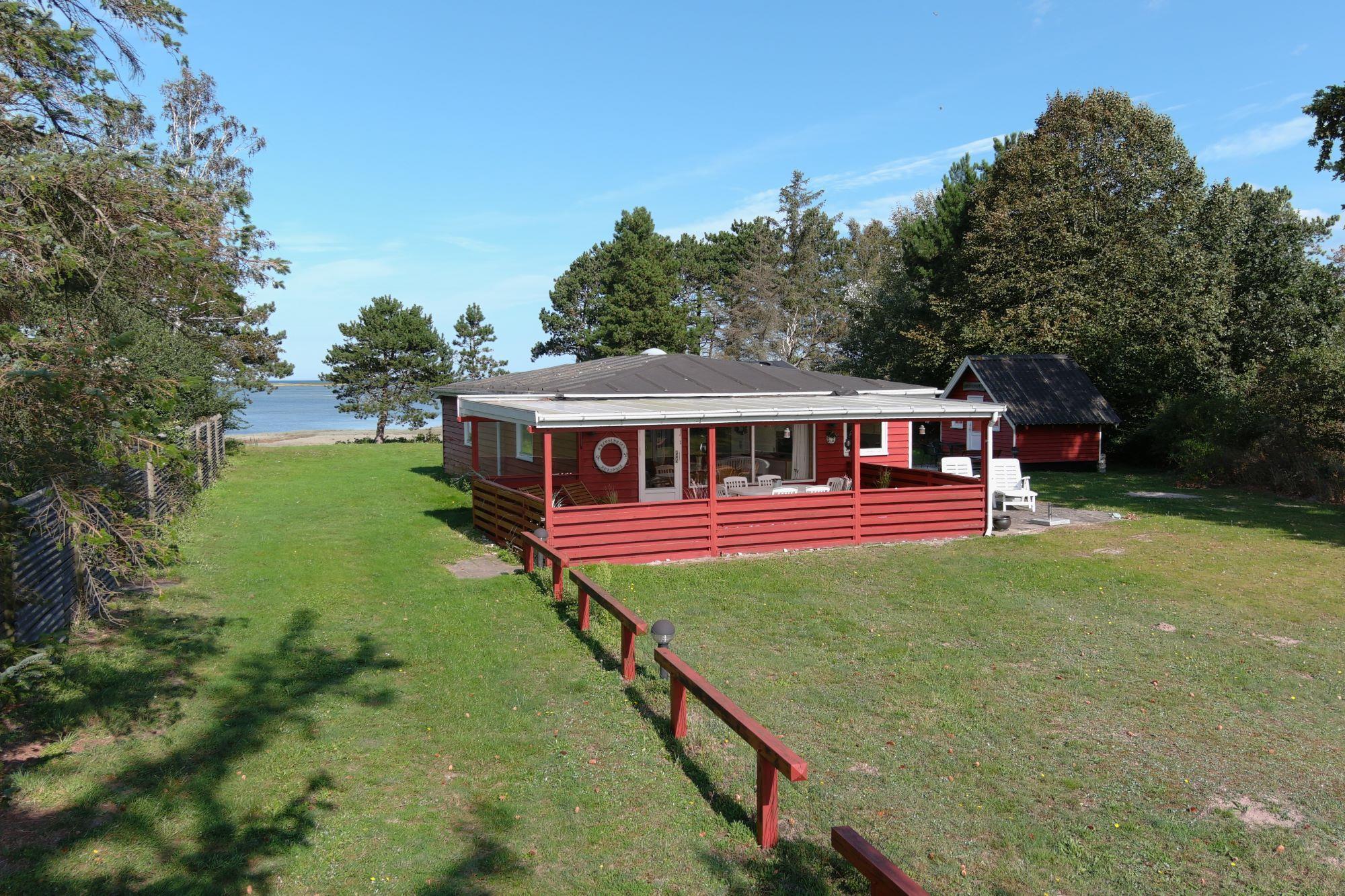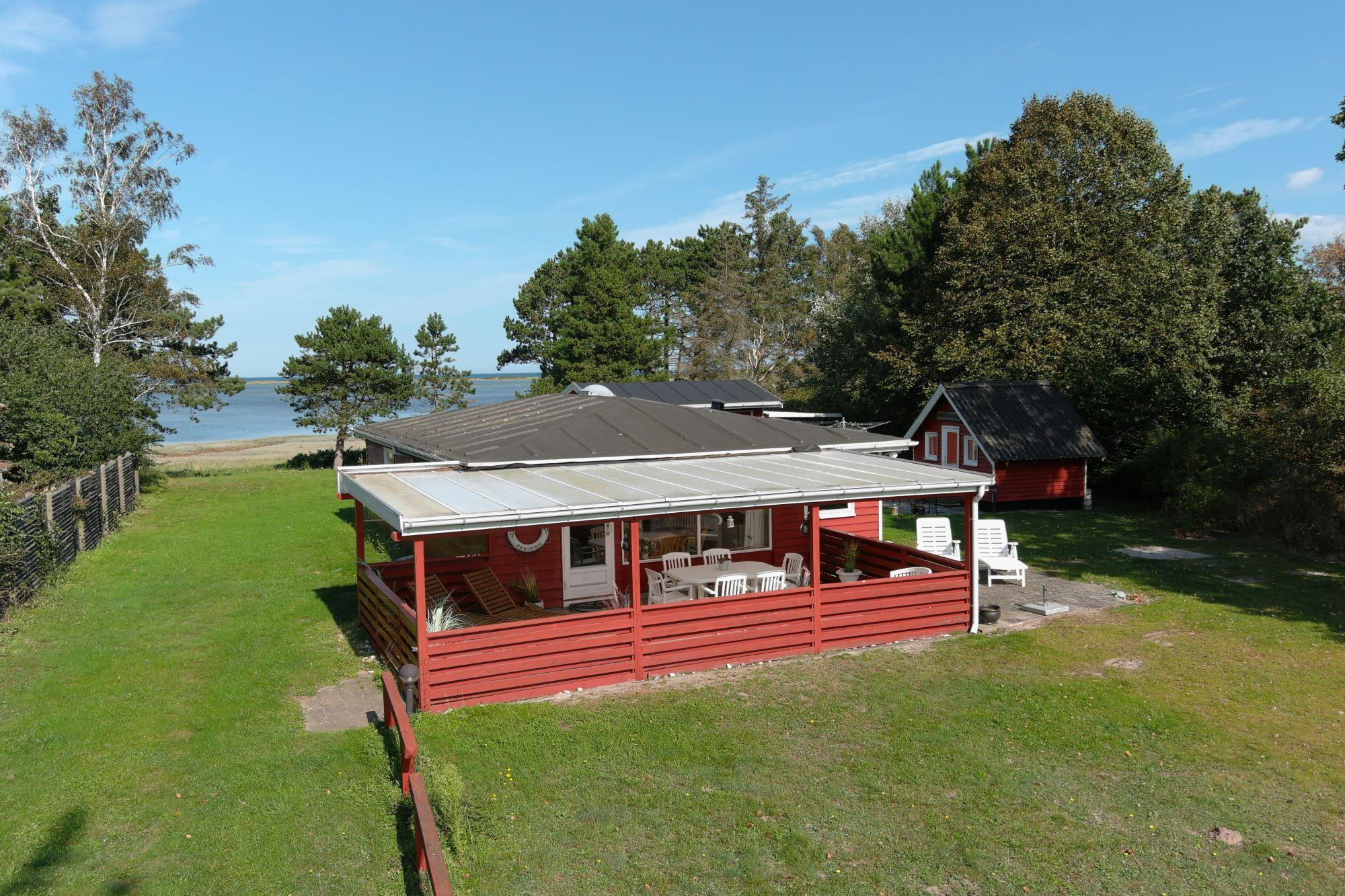 Fra sommerhuset kan du nyde udsigten til den private strand og den charmerende lille havn Korshavn mod syd. Mod nord venter en betagende panoramaudsigt over lagunen og det majestætiske landskab ved Fyns Hoveds spids.