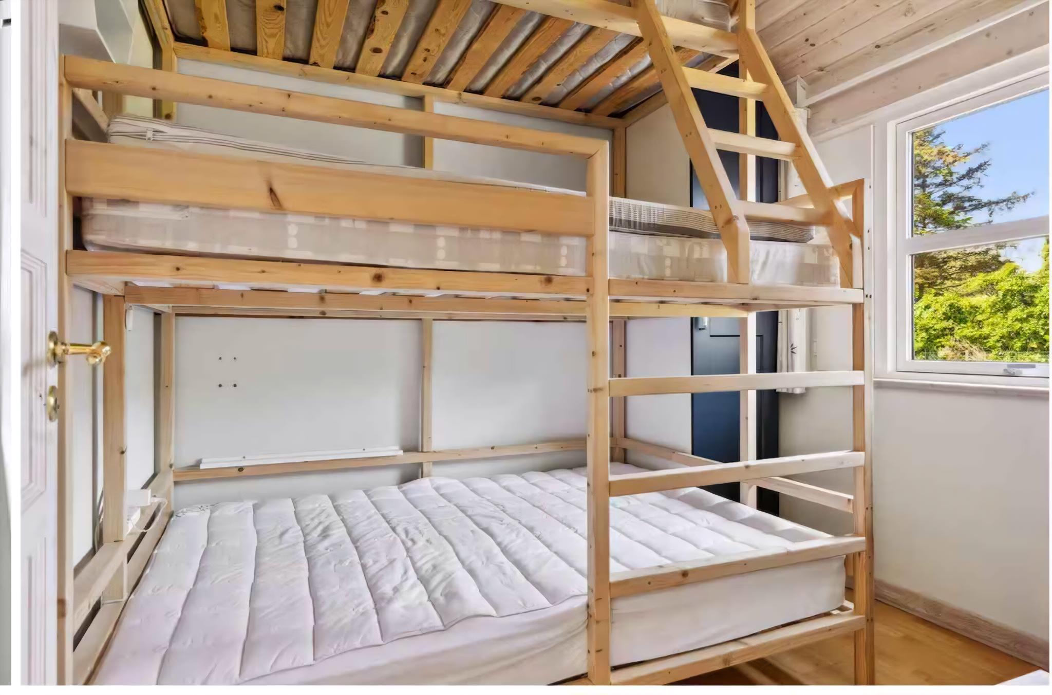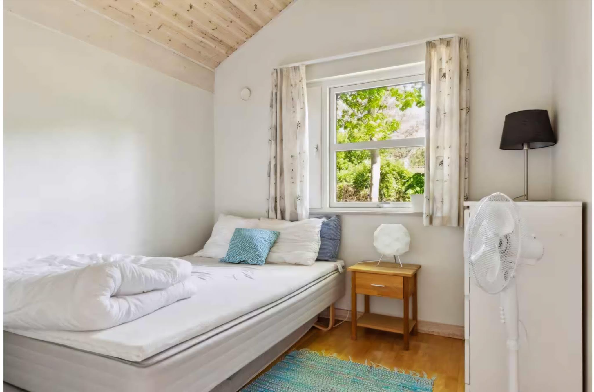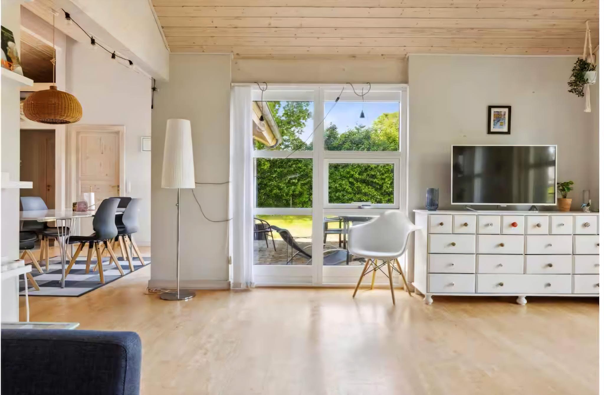 Dette sommerhus på 116 m² giver plads til otte personer fordelt på tre soveværelser. Ét værelse har tre køjesenge, ideelt til børn. Der er to badeværelser, hvoraf det ene rummer både spa og sauna. Huset er fra 2005 og udstyret med gulvvarme, så det kan bruges hele året. Varmepumpen er udskiftet i 2025, hvorfor huset er yderst energieffektivt og I kan forvente lave omkostninger til opvarmning. Haven er rummelig og indrettet til både leg og hygge. Her findes trampolin, stor grill og et shelter, hvor man kan overnatte og falde i søvn til lyden af vandet. Gennem haven fører en lille sti direkte til stranden, blot 300 meter væk. Området er kendt for rolige omgivelser tæt ved kysten. Stranden er lavvandet og velegnet til børn, og kysten indbyder til lange gåture og badeture. Her er også gode cykel- og vandreruter, som giver mulighed for at udforske landskabet på egen hånd. I nærheden findes små havne, caféer og gårdbutikker, hvor man kan købe lokale råvarer eller nyde friskfanget fisk. Sommermånederne byder på liv og aktivitet, mens man uden for højsæsonen kan nyde freden og de åbne vidder. Et funktionelt sommerhus med plads til fællesskab, afslapning og aktiviteter – et ideelt udgangspunkt for en ferie ved vandet.