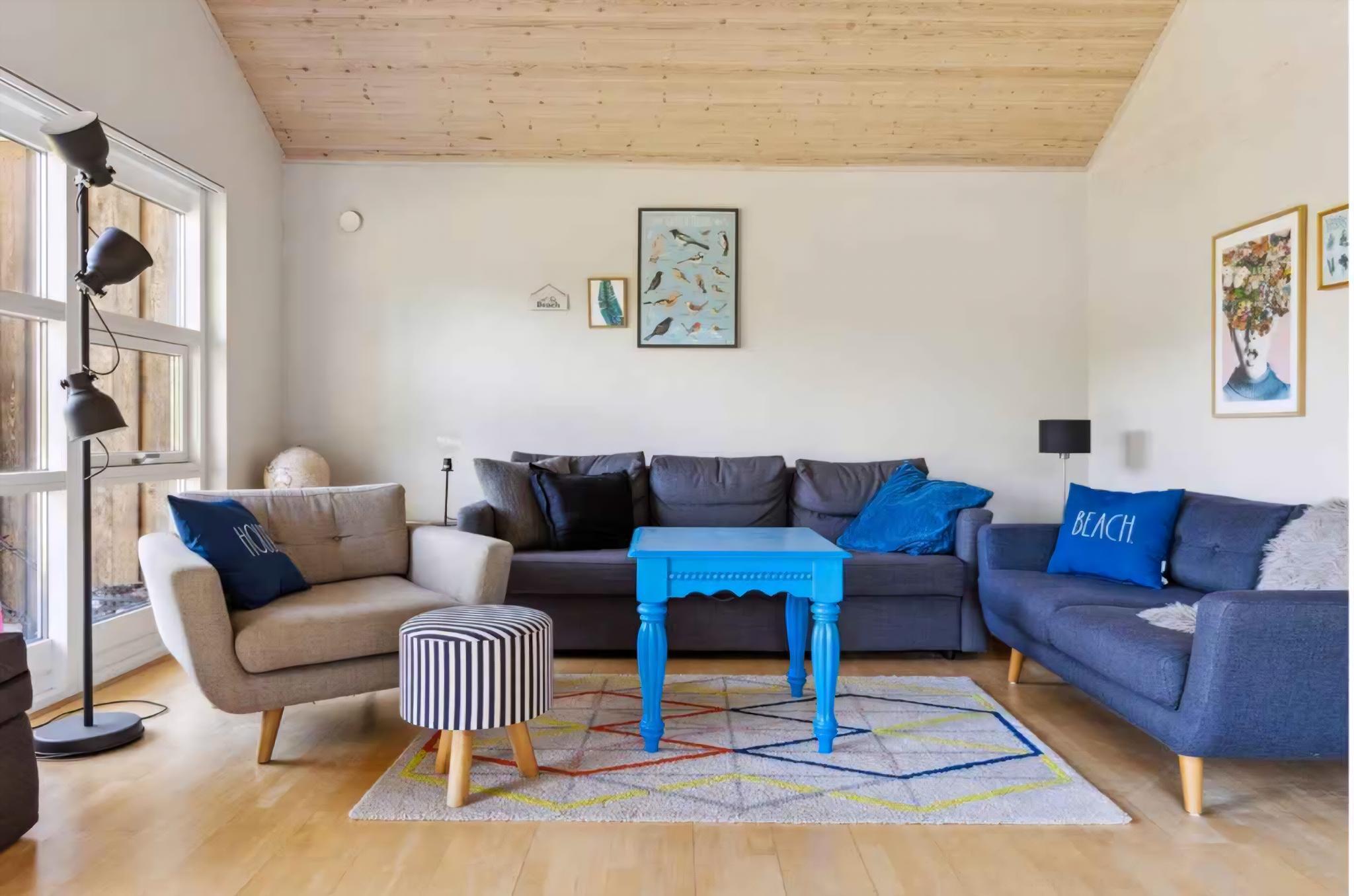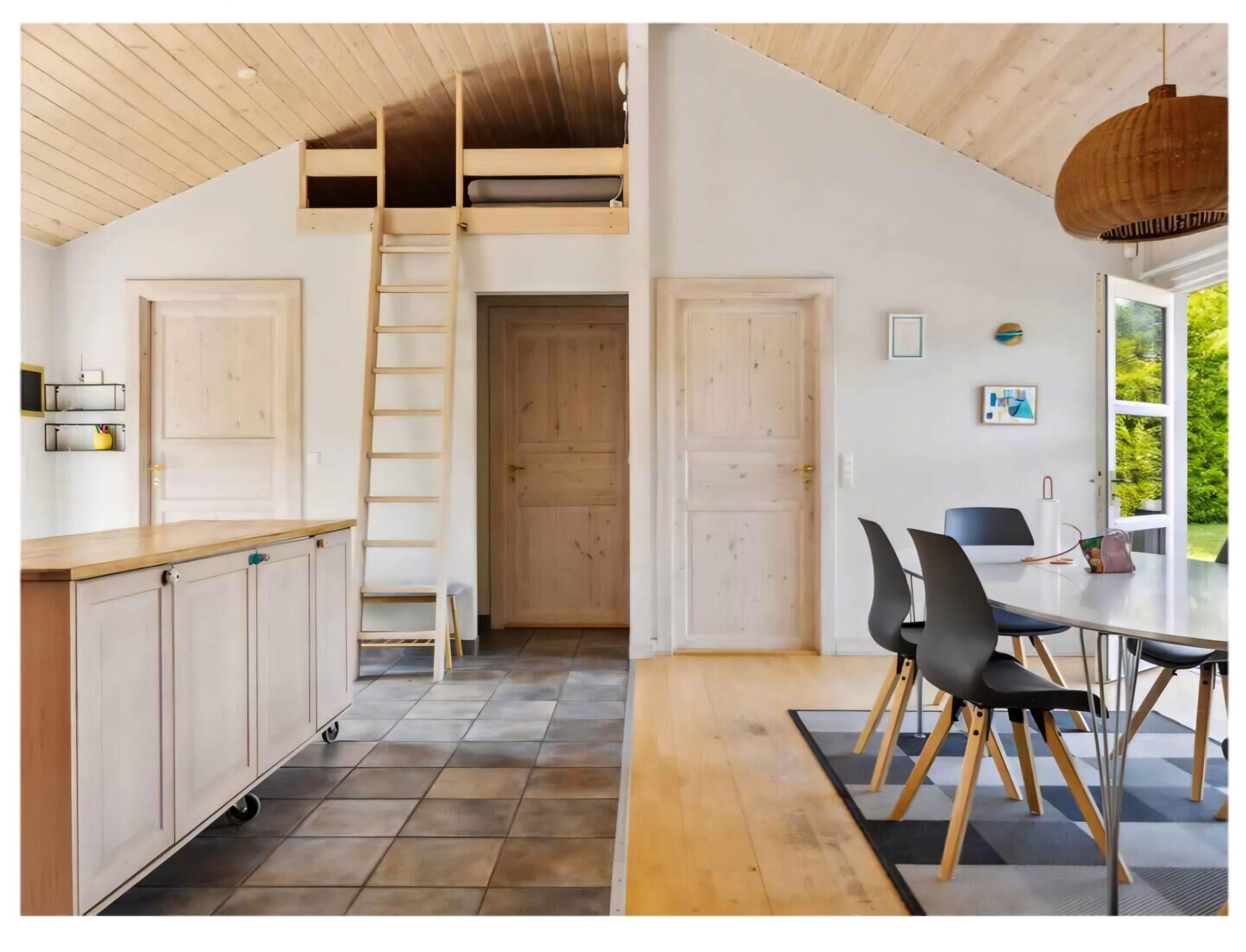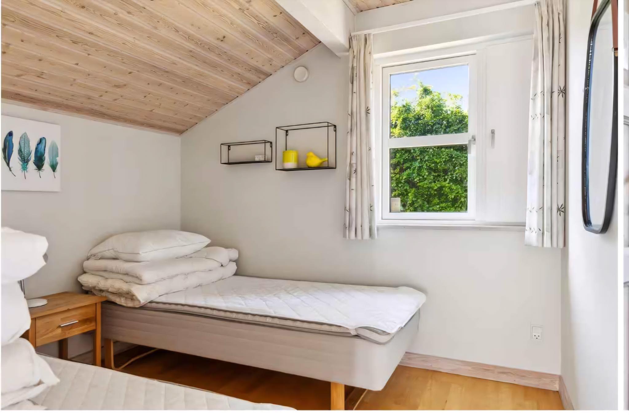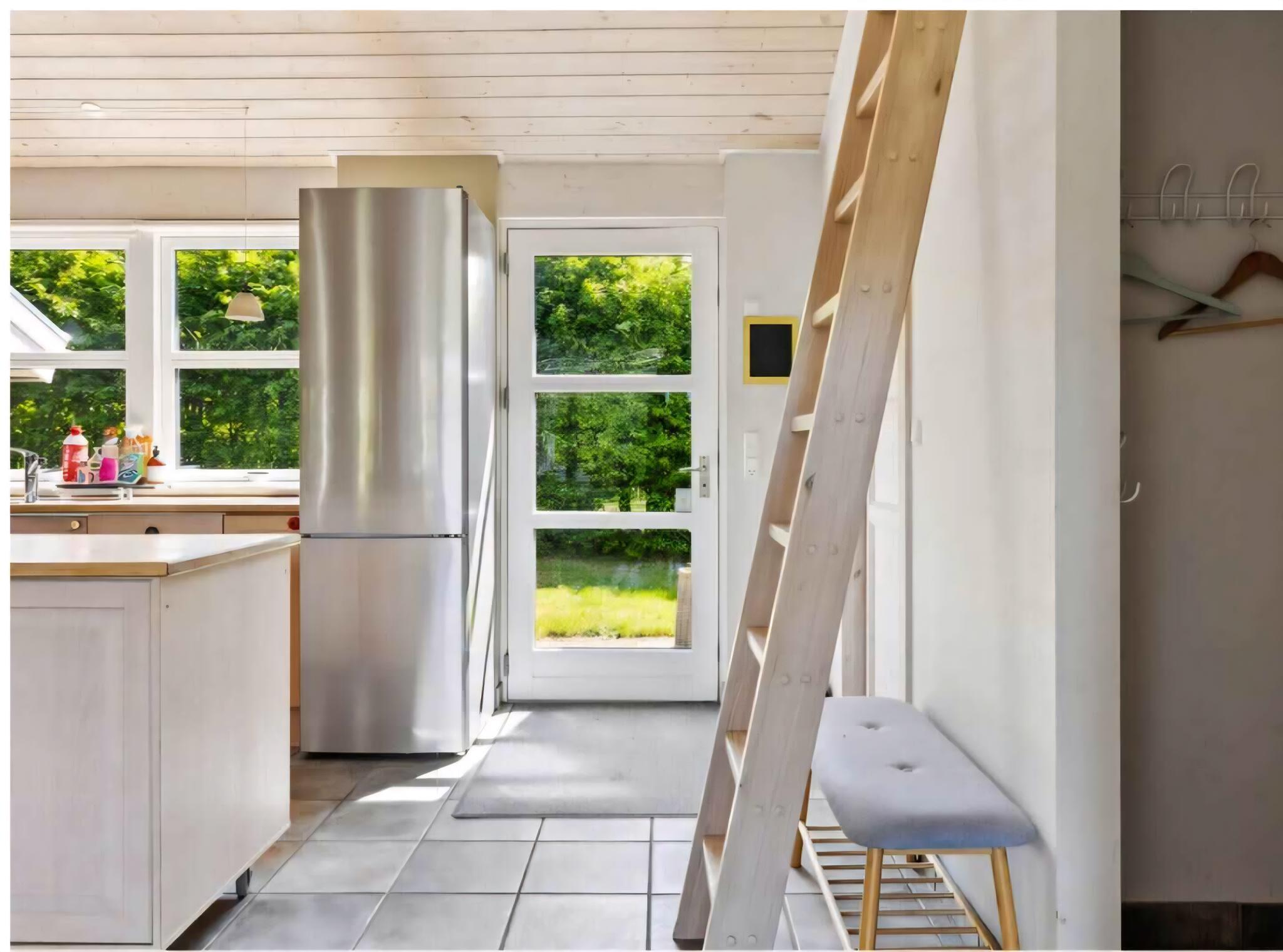 Dette sommerhus på 116 m² giver plads til otte personer fordelt på tre soveværelser. Ét værelse har tre køjesenge, ideelt til børn. Der er to badeværelser, hvoraf det ene rummer både spa og sauna. Huset er fra 2005 og udstyret med gulvvarme, så det kan bruges hele året. Varmepumpen er udskiftet i 2025, hvorfor huset er yderst energieffektivt og I kan forvente lave omkostninger til opvarmning. Haven er rummelig og indrettet til både leg og hygge. Her findes trampolin, stor grill og et shelter, hvor man kan overnatte og falde i søvn til lyden af vandet. Gennem haven fører en lille sti direkte til stranden, blot 300 meter væk. Området er kendt for rolige omgivelser tæt ved kysten. Stranden er lavvandet og velegnet til børn, og kysten indbyder til lange gåture og badeture. Her er også gode cykel- og vandreruter, som giver mulighed for at udforske landskabet på egen hånd. I nærheden findes små havne, caféer og gårdbutikker, hvor man kan købe lokale råvarer eller nyde friskfanget fisk. Sommermånederne byder på liv og aktivitet, mens man uden for højsæsonen kan nyde freden og de åbne vidder. Et funktionelt sommerhus med plads til fællesskab, afslapning og aktiviteter – et ideelt udgangspunkt for en ferie ved vandet.