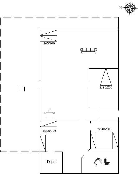 Der er i alt 3 soveværelser. Sovepladserne fordeler sig på: 2 sovepladser i dobbeltseng. 4 sovepladser i enkeltsenge. 2 sovepladser i sovesofa (dobbelt). Derudover er der 1 stk. barneseng.