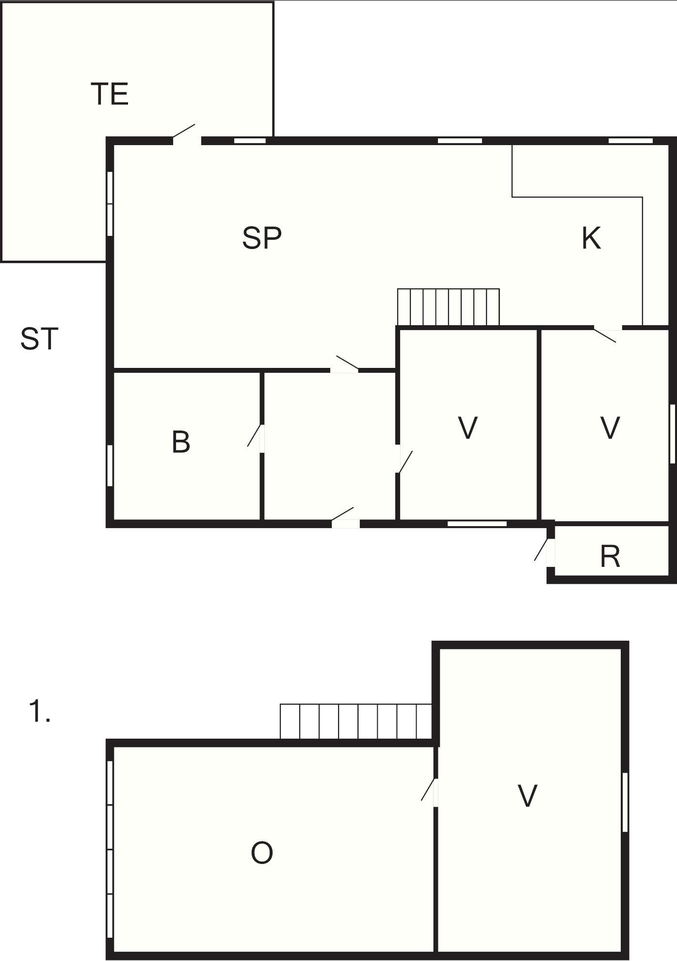 I stueplan findes køkken/alrum med terrasseudgang, 2 værelser heraf 1 med dobbeltseng (140x200) samt 1 værelse med 2 x enkeltsenge samt badeværelse.