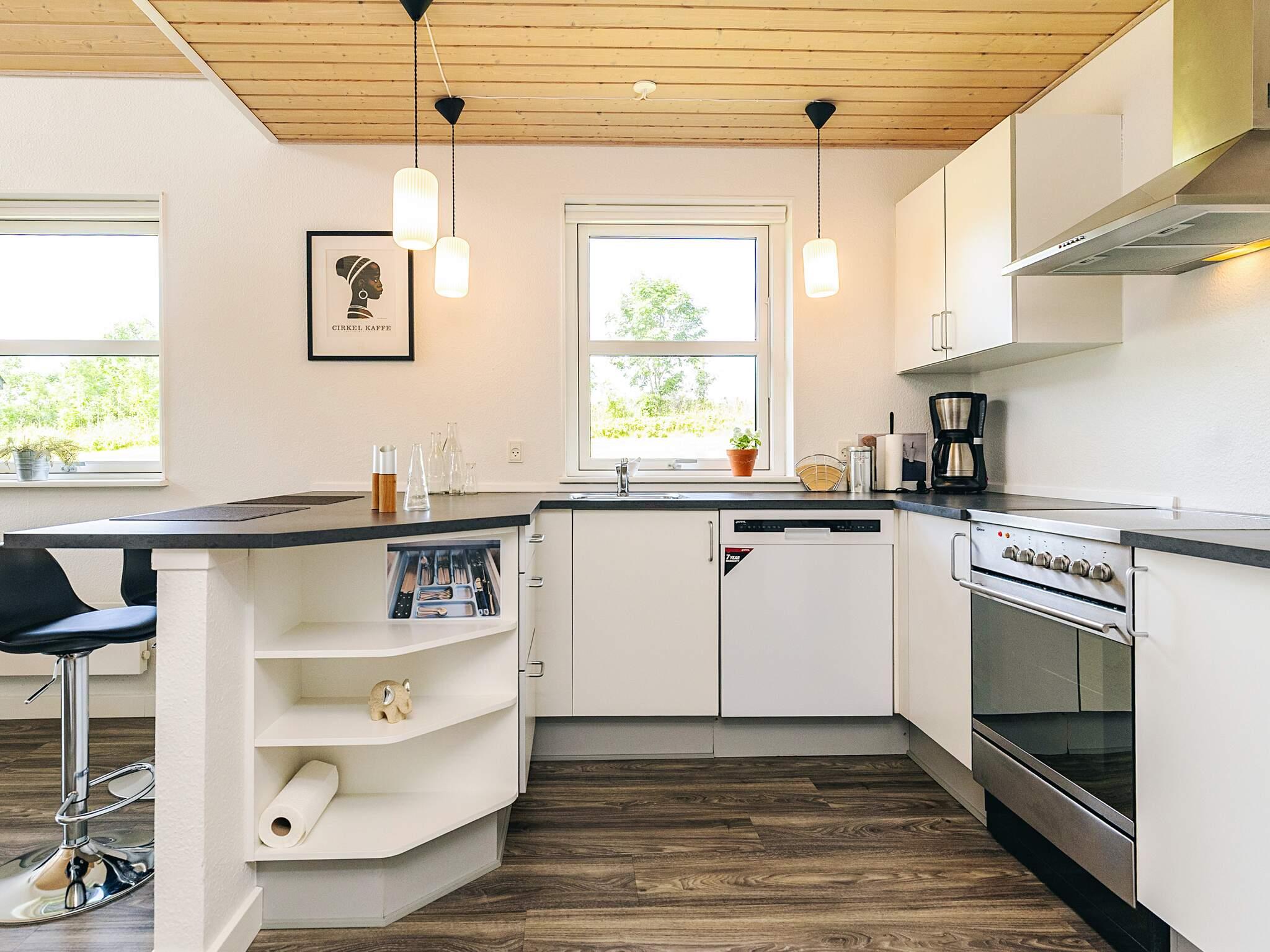 Køkkenet er veludstyret med keramisk komfur, emhætte, opvaskemaskine, køleskab, fryser min. 60 liter samt kaffemaskine. Der er højstol til de mindste.