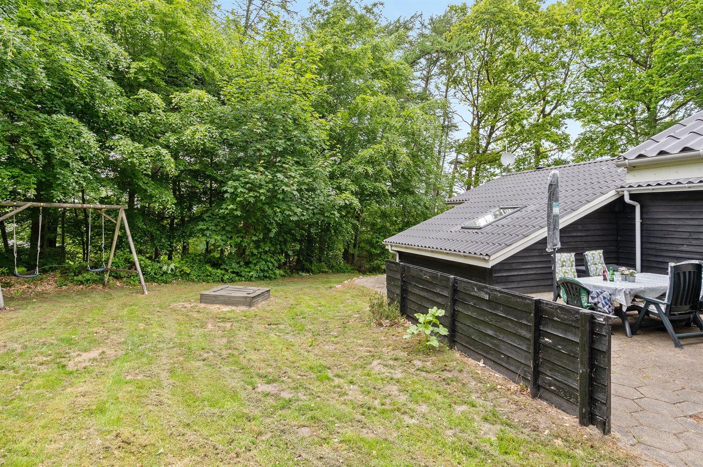 Dejligt sommerhus i Gatten med stor naturgrund, spa, sauna og tæt på golf og sø.