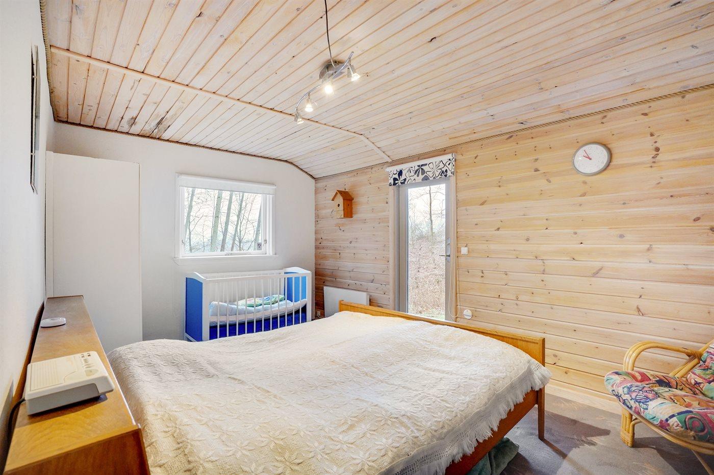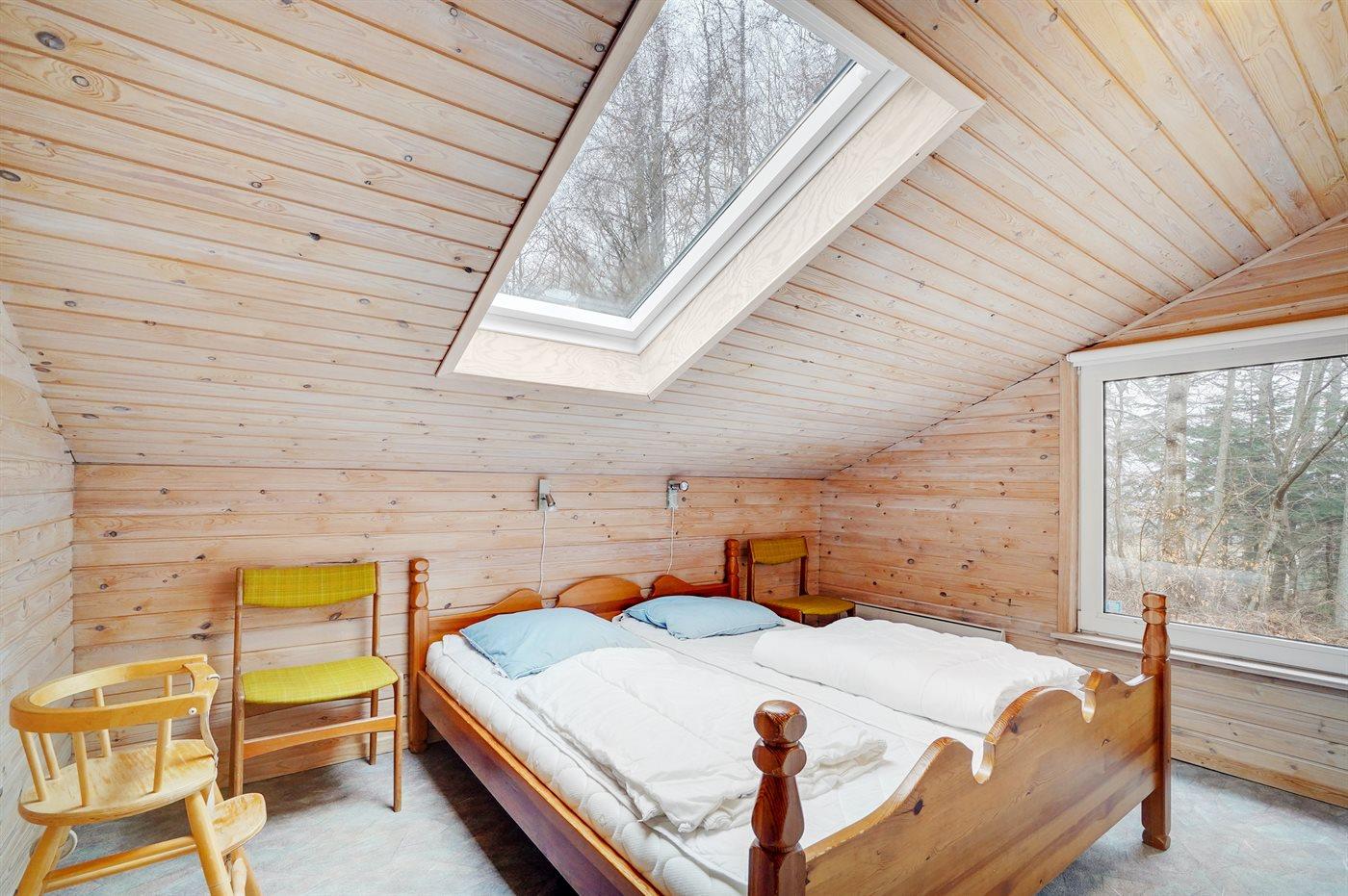 Der er i alt 4 soveværelser. Sovepladserne fordeler sig på: 4 sovepladser i dobbeltsenge. 2 sovepladser i køjeseng. 2 sovepladser i sovesofa (dobbelt). 1 soveplads på madras. 1 af disse sovepladser befinder sig på husets hems. Derudover er der 1 stk. barneseng.