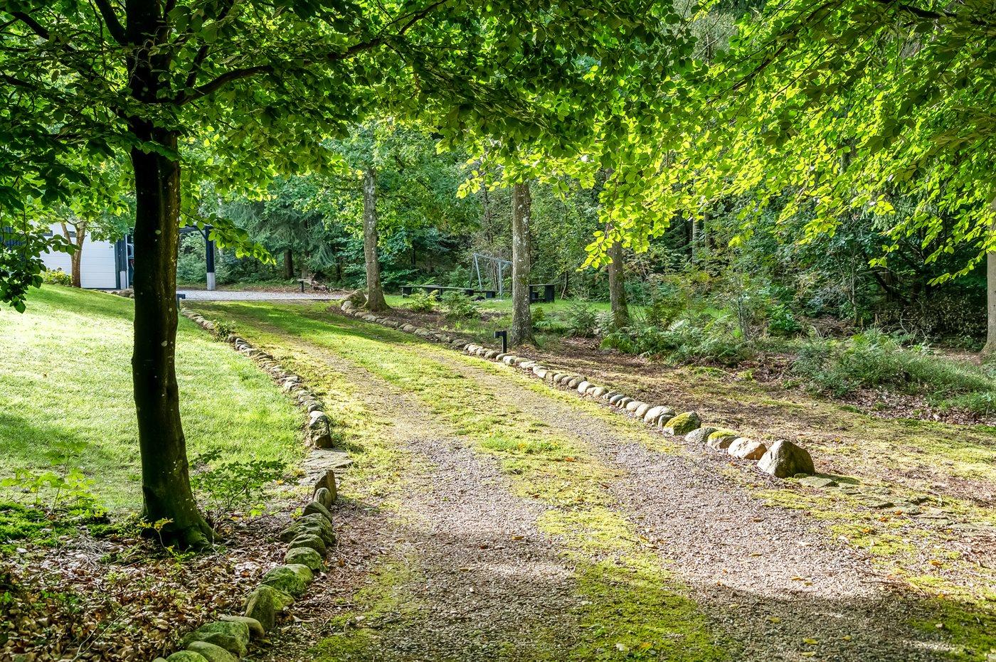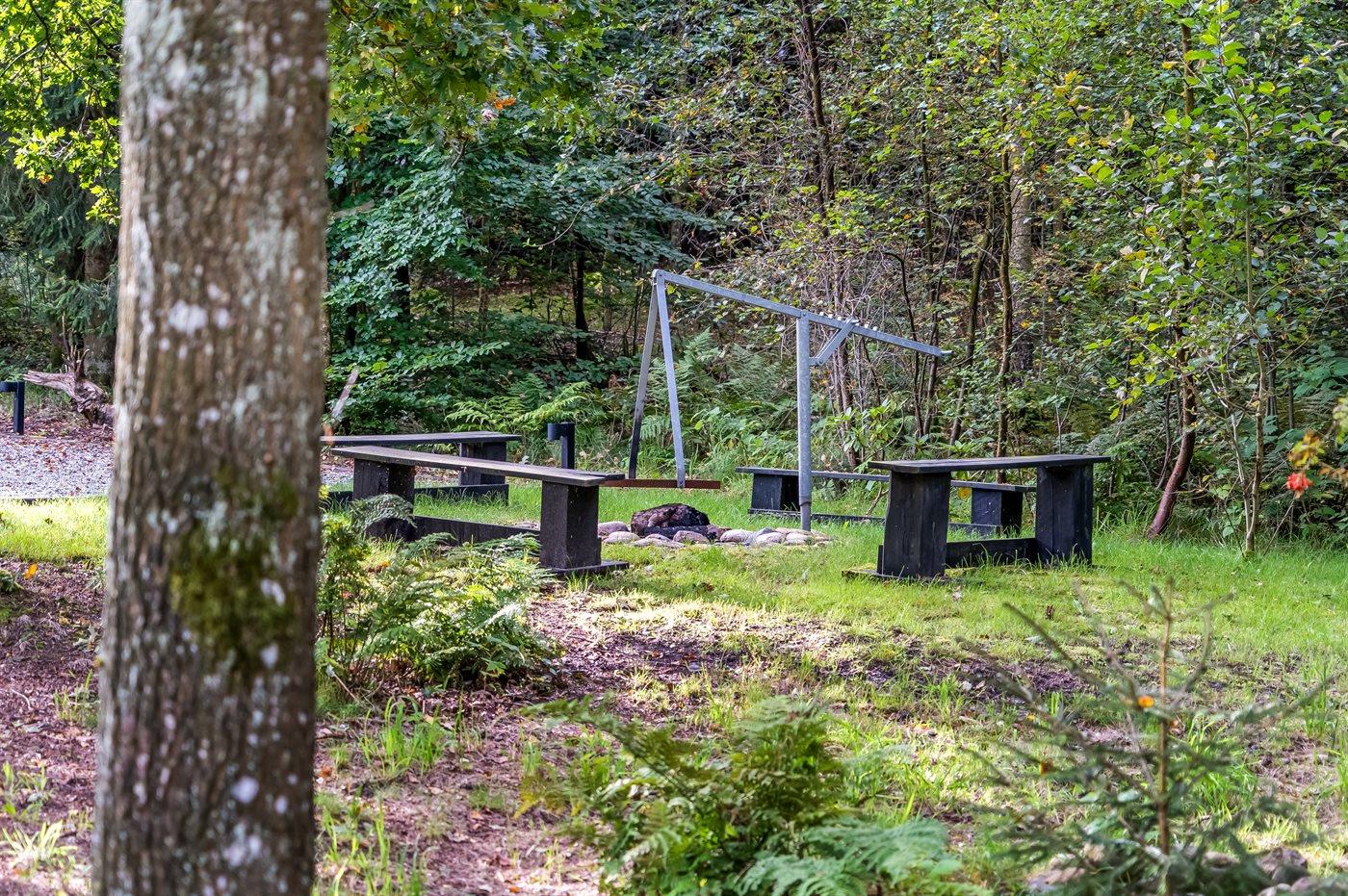 Ferieboligen er beliggende på en 5400 m² stor naturgrund. Der er 14000 m til fjorden. Nærmeste forretning er beliggende i en afstand af 3000 m. Der er en golfbane i en afstand af 2000 m. Til ferieboligen hører åbent terrasseareal. Bålsted. Grill til rådighed. Parkering ved ferieboligen.