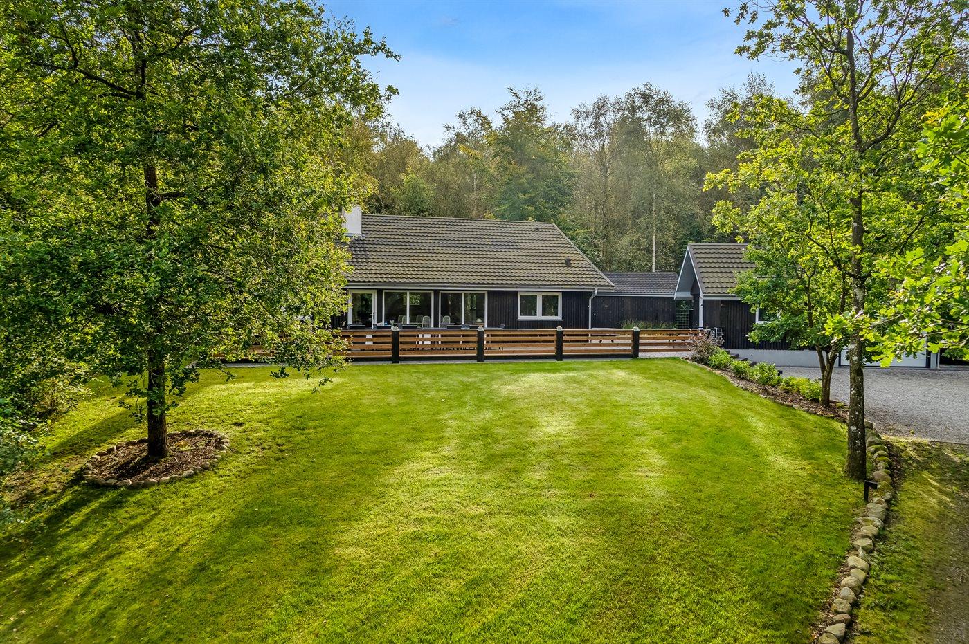Flot og velholdt sommerhus på stor naturgrund nær golfbane og fjord med moderne faciliteter.