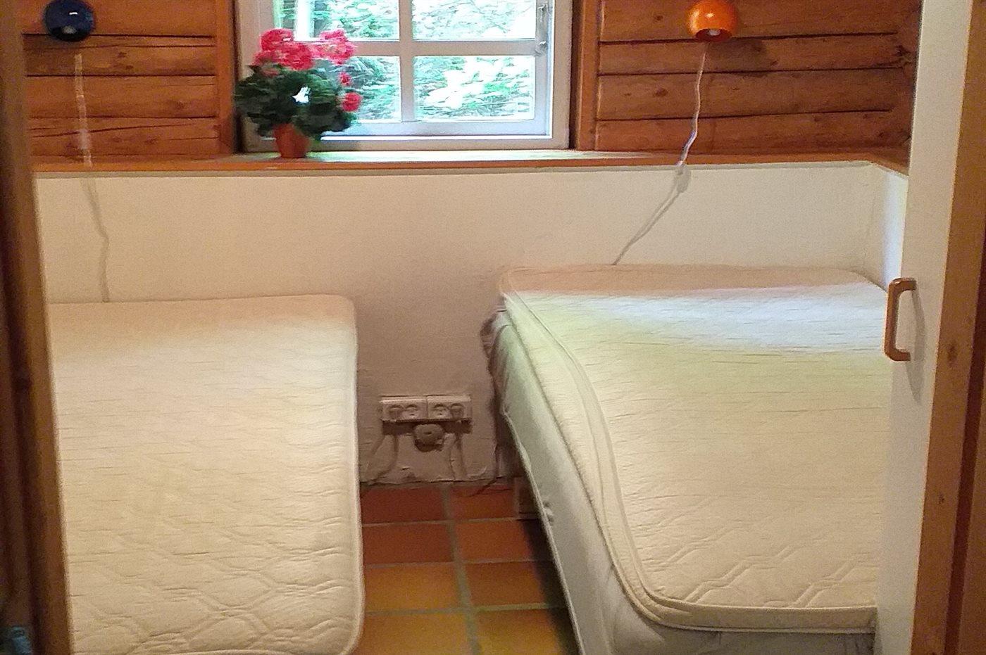 Der er i alt 3 soveværelser. Sovepladserne fordeler sig på: 2 sovepladser i dobbeltseng. 4 sovepladser i enkeltsenge. Derudover er der 1 stk. barneseng.