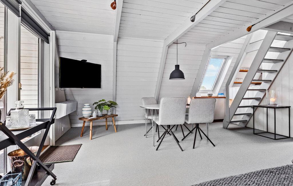 Velkommen til dette karakteristiske feriehus, hvor I som lille familie får en dejlig ramme om årets ferie i et område med mange fine muligheder for en aktiv ferie. Huset er nydeligt indrettet over flere etager med lyse skråvægge, komfortable møbler og et veludstyret køkken, hvor I kan kræse om livretterne efter en dejlig dag på farten. Lad en hyggelig aften gå på hæld med god mad ved spisebordet og en god film eller brætspil i sofahjørnet, mens I lægger planer for de kommende dage.