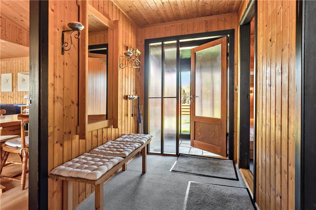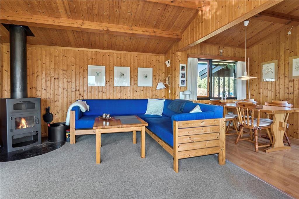 Huset byder på en god entré/fordelingsgang som giver adgang til 2 soveværelser samt badeværelset. Videre gang i huset kommer man til køkkenet, som ligger i delvis åben forbindelse med spiseafdelingen samt resten af stuen. Stuen tilbyder en stor sofaafdeling med brændeovn i den ene side, mens der i den anden side af stuen er indrettet en hyggekrog perfekt til brætspil, kortspil eller hvad man ellers kan finde på med familien. Fra stuen er der ligeledes udgang til terrassen, samt store vinduespartier ud mod haven som giver et godt lysindfald i stuen.