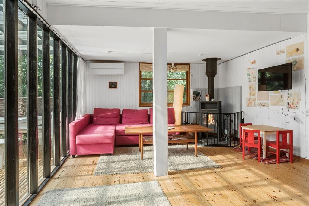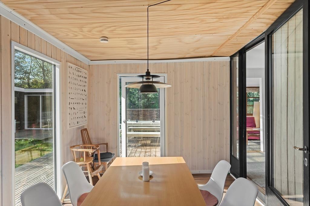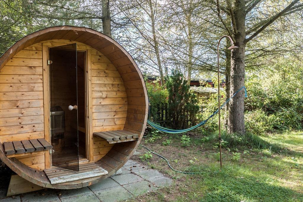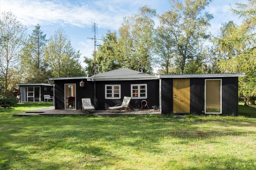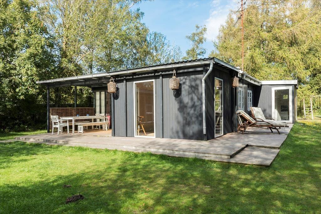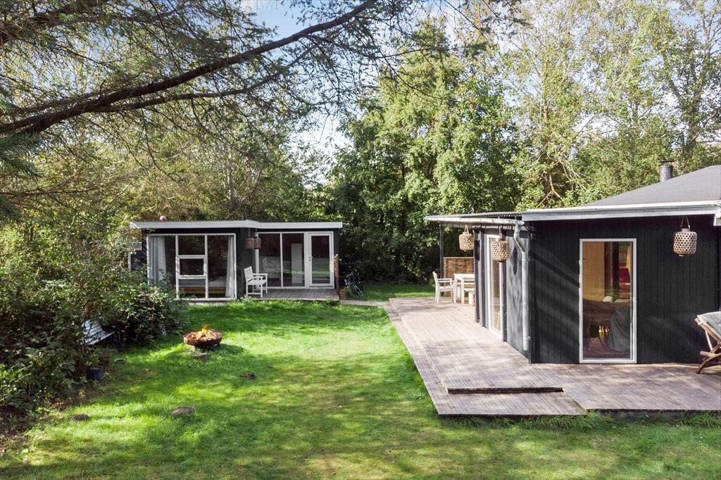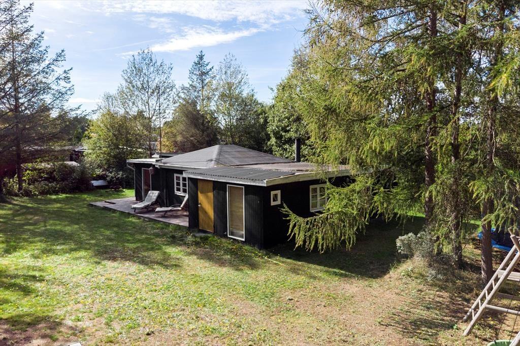 Dette hyggelige fritidshus ligger kun 350 meter fra vandet. Derudover ligger huset på en 1006 kvm grund. Ved huset er der skøn terrasse rundt om huset, hvor der er havemøbler og grill. I haven er der plads til en masse aktiviteter og leg, derudover er der også bålplads. Til huset er der også en overdækket terrasse. Til sidst er der den skønne udendørs sauna, hvor der er plads til afslapning og hygge.