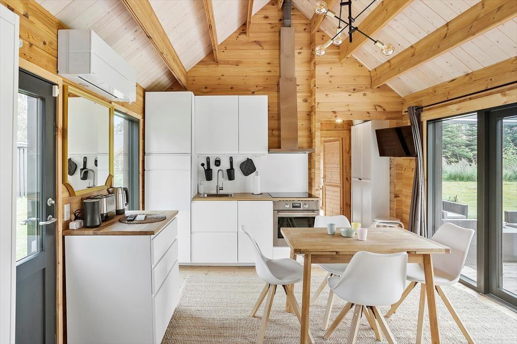 Et godt indrettet fritidshus fra 2022 på 50 kvm, i god og hyggelig træstil som byder på et godt køkken-alrum, med sofaafdeling i den ene side, spiseplads i midten og køkkenet i den anden side. Derudover et pænt badeværelse samt 2 gode soveværelser, liggende i hver sin ende af huset og som begge har direkte udgang til terrassen.