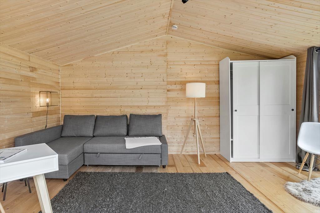 Fra terrassen er der en kort gåtur over haven til ejendommens anneks/atelier, som byder på en god sovesofam skabsplads samt skrivebord til hvis der skal arbejdes i fred.